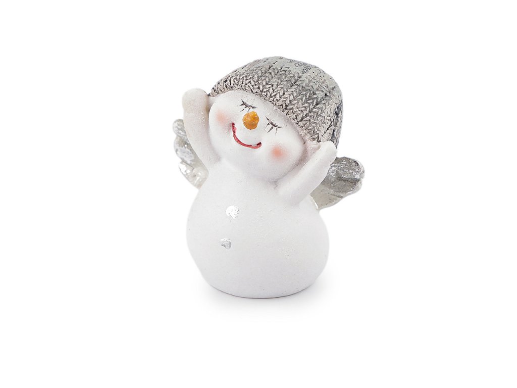 Figurka sněhuláka působí roztomile. Vynikne zakomponovaná ve vánočních a zimních aranžmá, na dekoračních věncích apod. Má metalické detaily.