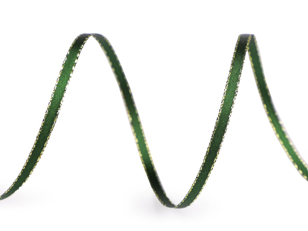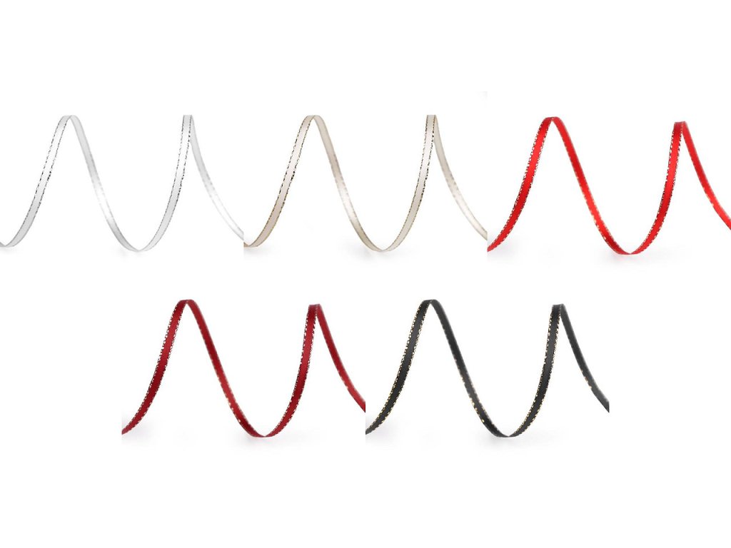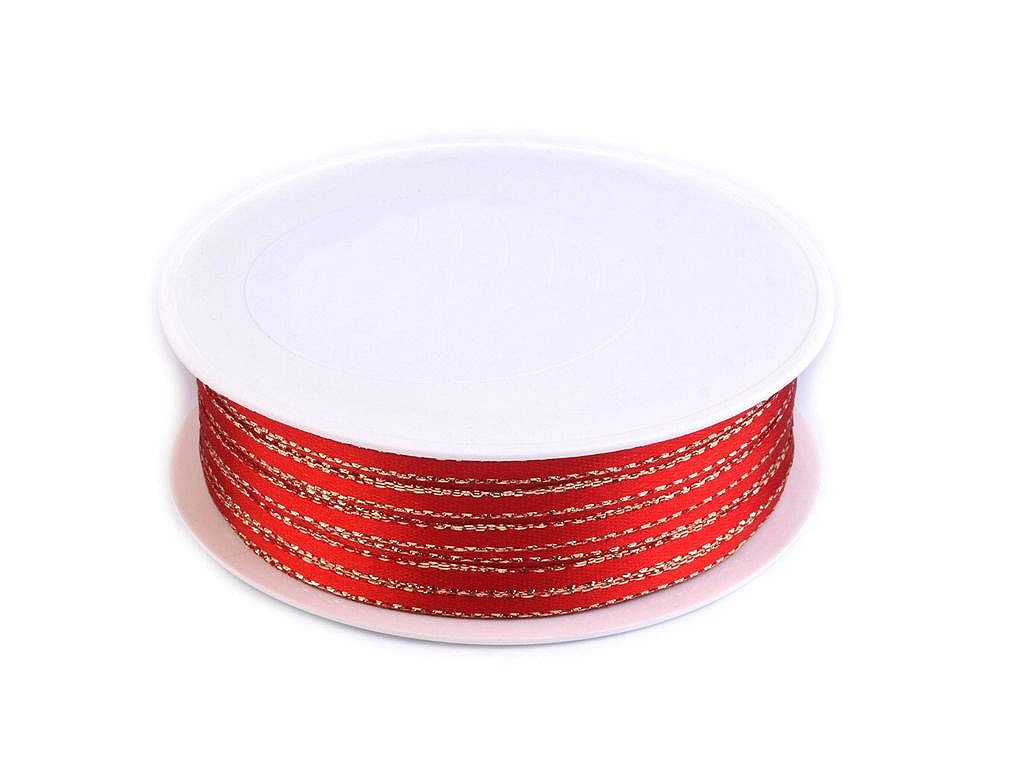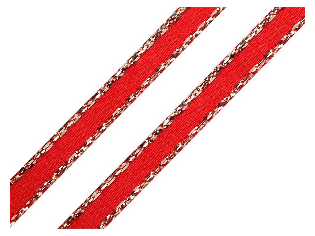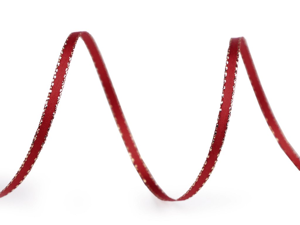 Atlasová stuha oboulící s lurexovým okrajem šíře 3 mm vánoční