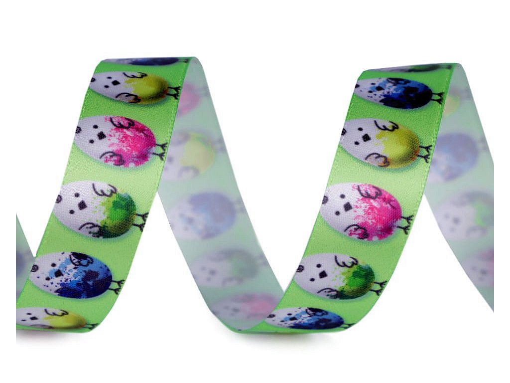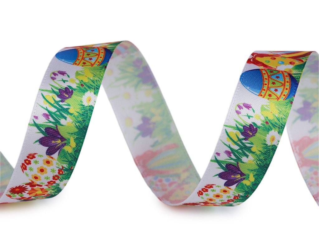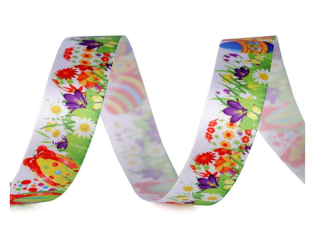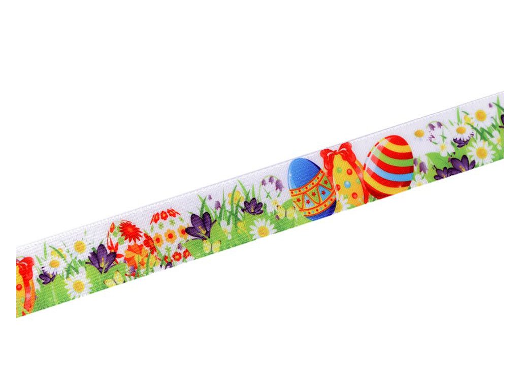 Dekorační stuha s poutavým velikonočním potiskem. Digitální potisk je jednostranný.