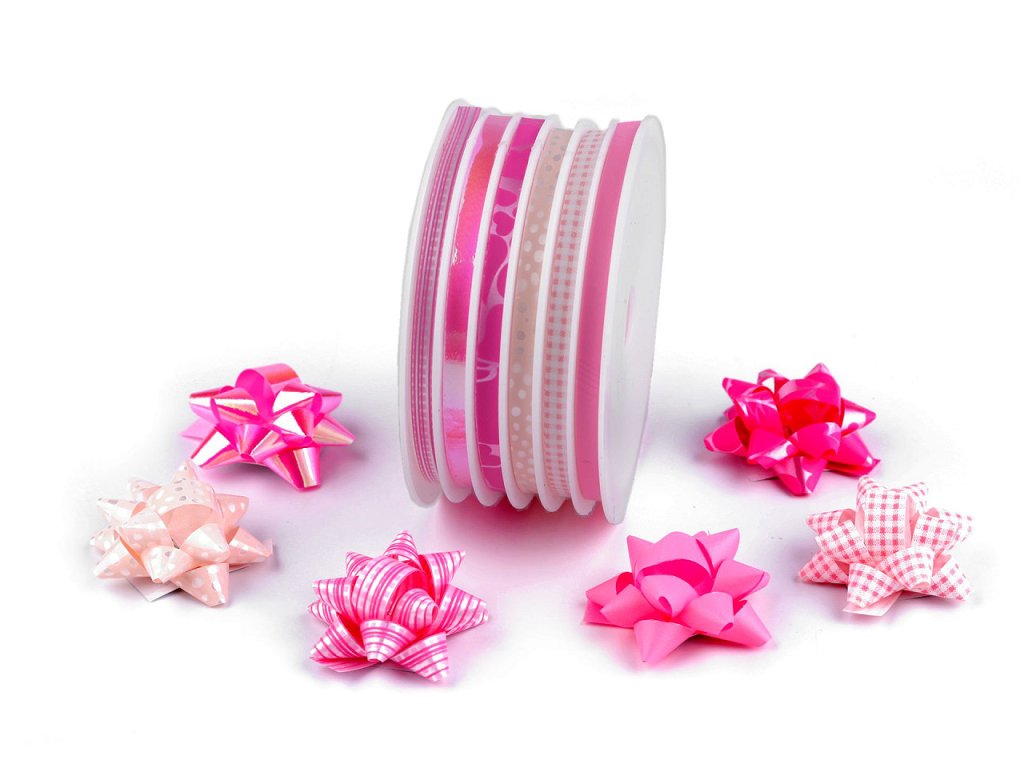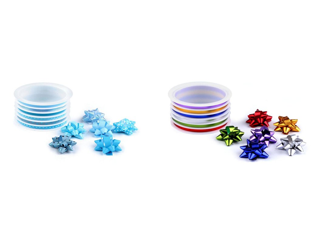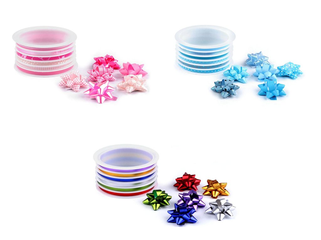 Balicí sadu složenou z foliových stuh a samolepicích rozetek využijete celoročně na ozdobné balení dárků, výrobu přáníček, dekorací i k aranžérským účelům. Stuhy jsou pevné, netrhají se, mají všestranné použití. Můžete je upravit do krouceného tvaru nůžkami.