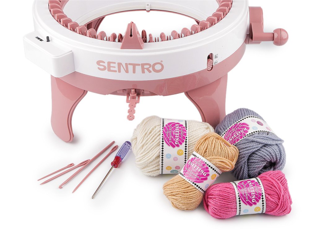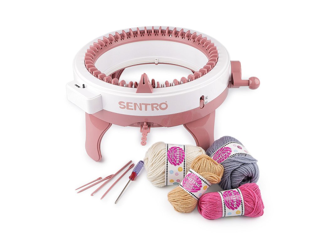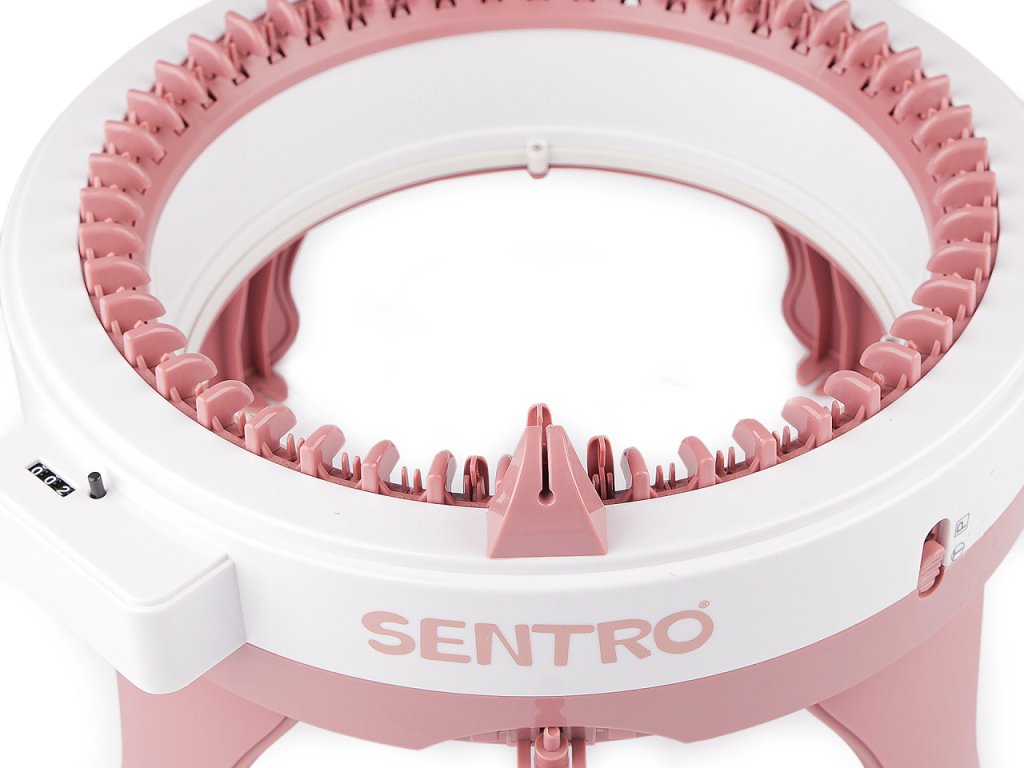 Průměr pletací části je 27 cm, dokola je 48 pletacích háčků (jehel).