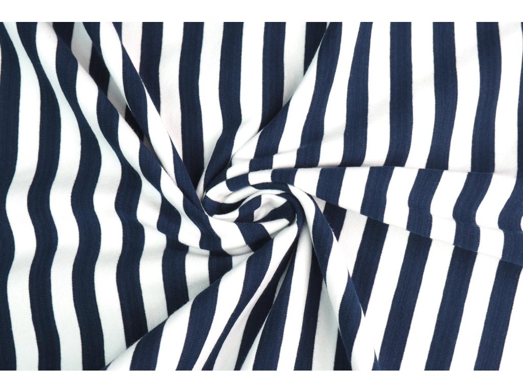 Bambusový úplet pruhovaný modro-bílý 0,5 cm doprodej 0,4m
