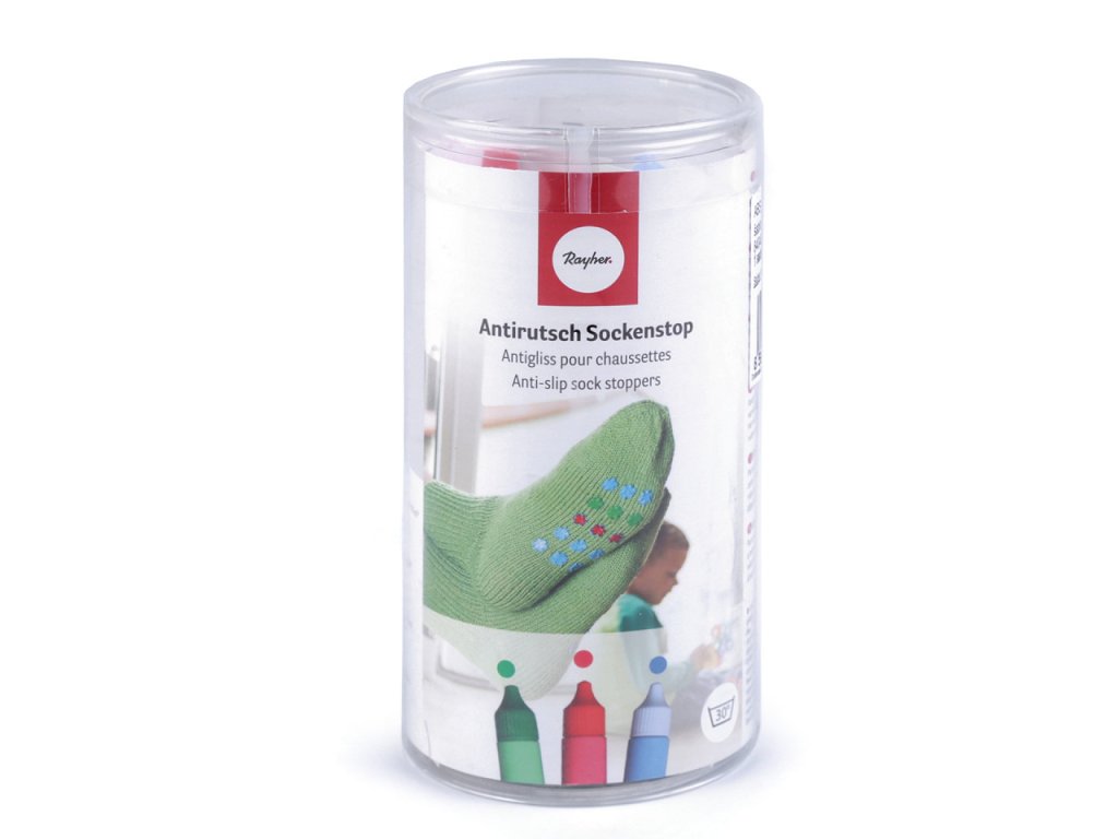 Sadu 3 barev gumových protiskluzů a 4 šablon využijete především na ponožky, punčochy a papuče. Plastická barva po zaschnutí zajistí protiskluzový efekt, aby ponožky neklouzaly.