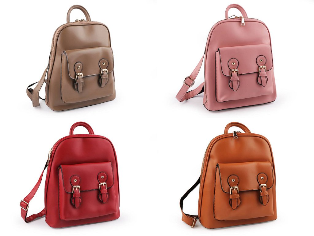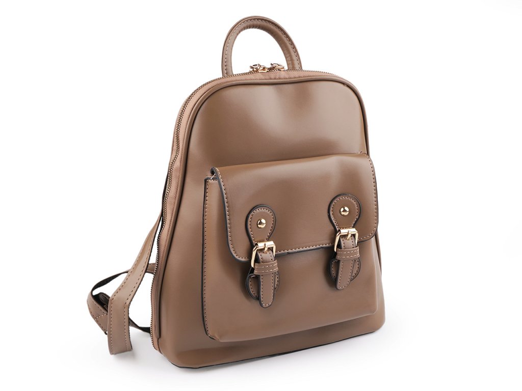 Hlavní kapsa je na zip, je velice prostorná. Je rozdělená přepážkou na dva oddíly, v přepážce je umístěná kapsa na zip. Nechybí ani vnitřní kapsička na zip na drobnosti či mobil a kapsa na uložení plochých předmětů. Na přední straně batohu je kapsa, která se zapíná na klopu s magnetickým zapínáním. Přezky jsou pouze ozdobné. Na zadní straně batohu je umístěná malá plochá kapsa na zip. Ucho je pevné, krátké do ruky či na pověšení. Popruhy jsou dostatečně dlouhé s možností regulace pro pohodlné užívání během celého dne. Jsou podšité látkou. Nahoře jsou popruhy v kovových průvlecích, které slouží na protáhnutí popruhů na nošení křížem jako kabelka. Dno batohu je opatřené kovovými hřeby, které jej chrání před poškozením.
