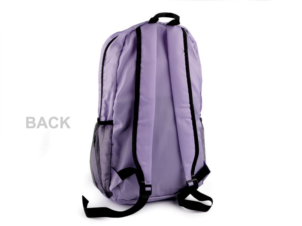Větší skládací batoh je lehký jako peříčko. Je ideální na každodenní použití nebo cestování, uzavírá se na zip. Na bocích má praktické síťované kapsy, uvnitř batohu najdete ještě jednu menší kapsu. Na přední straně batohu je kapsa na zip, do které se dá celý batoh složit, jako do pouzdra. Po složení batoh výrazně ušetří místo. Batoh má nastavitelné popruhy s polstrováním.