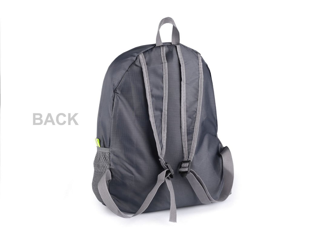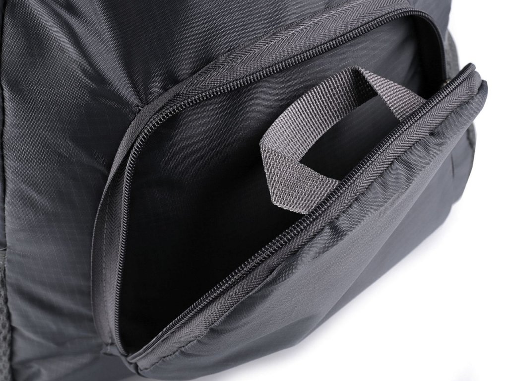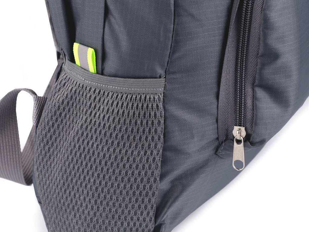 Skládací batoh je lehký jako peříčko. Je ideální na každodenní použití nebo cestování, uzavírá se na zip. Na bocích má praktické síťované kapsy s reflexním proužkem, uvnitř batohu najdete ještě jednu malou kapsičku. Na přední straně batohu je kapsa na zip, do které se dá celý batoh složit, jako do pouzdra s uchem. Po složení batoh výrazně ušetří místo. Batoh má nastavitelné popruhy.