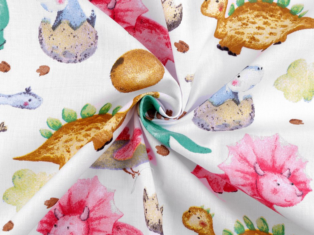 Bavlněnou látku s obrázky dinosaurů si zamilují všechny děti. Je vhodná na šití polštářů, hnízd pro děti, povlečení, kapsářů, tašek i pytlíků.