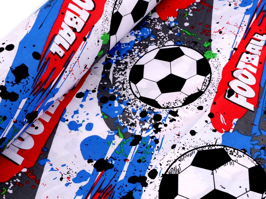 Bavlněnou látku s fotbalovým designem využijete na šití polštářů, povlečení, závěsů, pytlíků, tašek, mantinelů do postýlek i hnízd pro děti.
