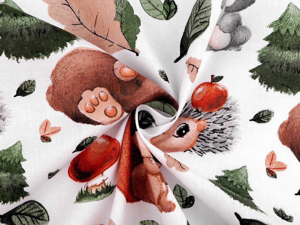 Bavlněnou látku s motivem roztomilých zvířátek využijete na šití polštářů, dětského povlečení, závěsů, pytlíků, tašek, mantinelů do postýlek i hnízd pro děti.