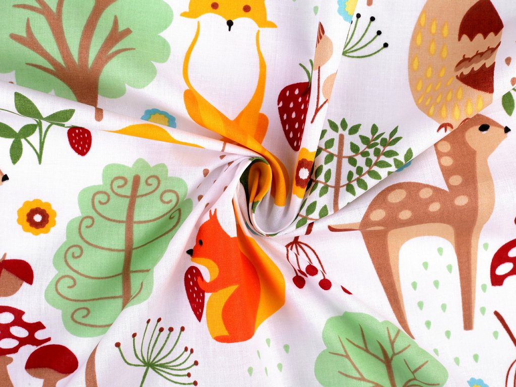 Bavlněná látka s motivy zvířátek se skvěle hodí na výrobu dekorativních předmětů nebo doplňků do dětských pokojů. Využijete ji na šití polštářů, povlečení, závěsů, pytlíků, tašek, mantinelů do postýlek i hnízd pro děti.