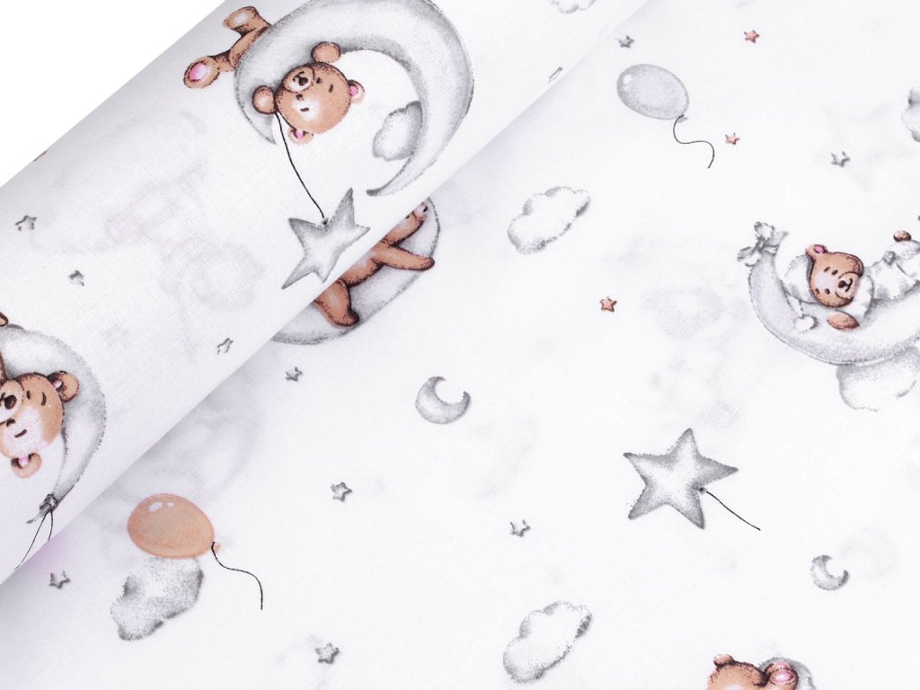 Bavlněná látka s kouzelným motivem medvídků je vhodná na šití polštářů, povlečení, pytlíků, tašek, kapsářů i mantinelů do postýlek.