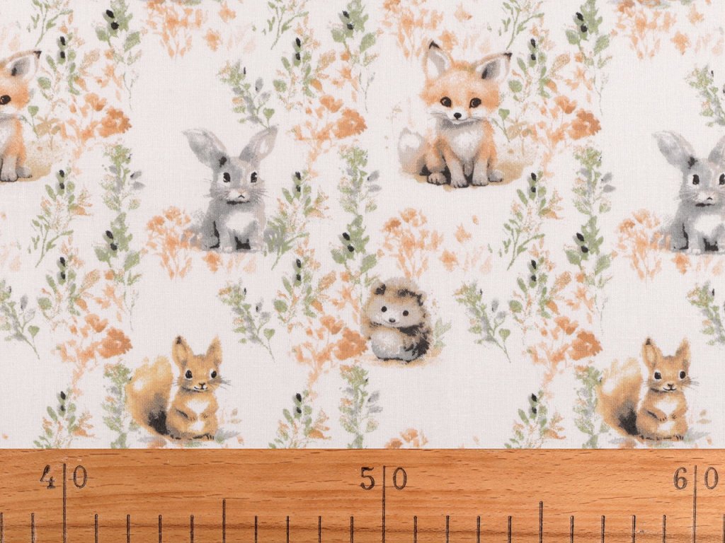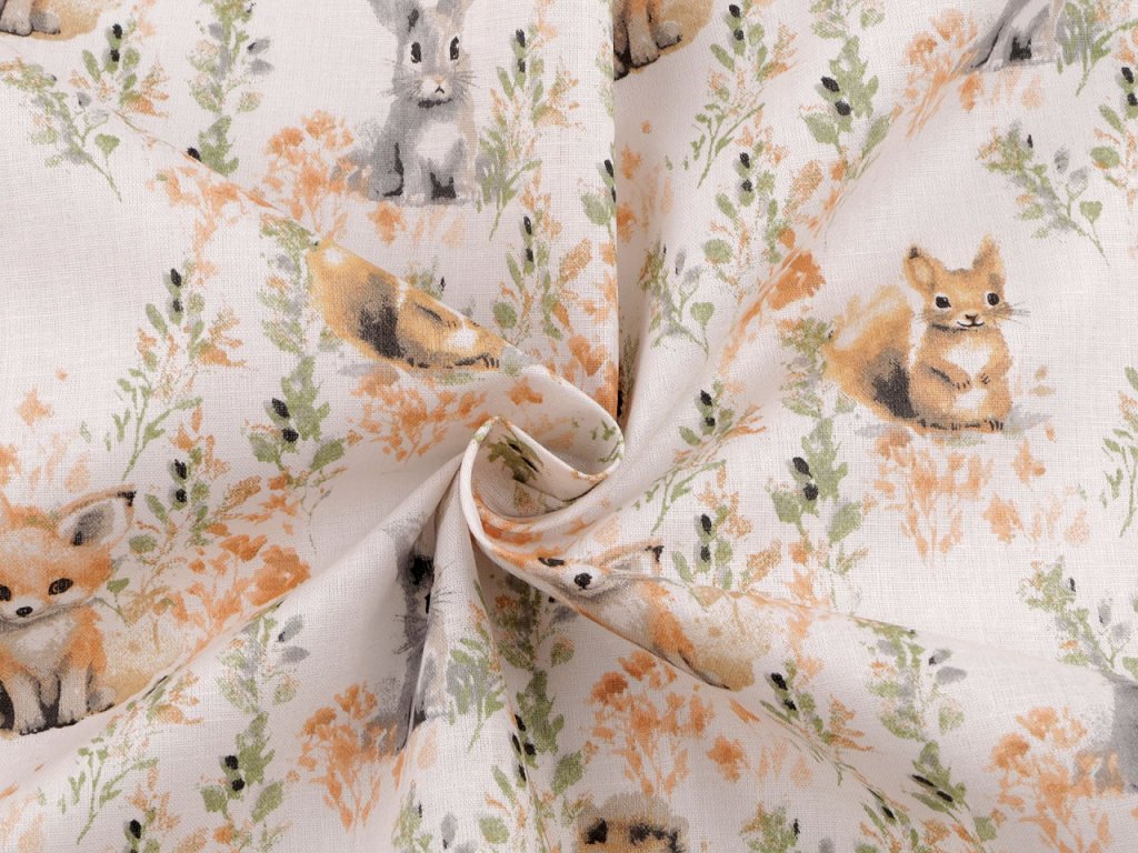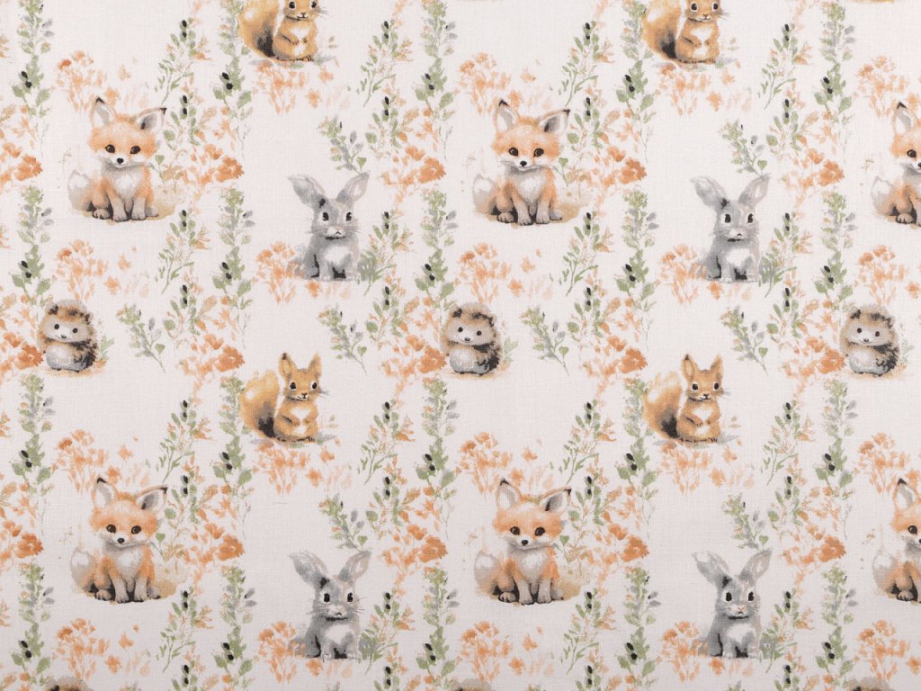 Bavlněná látka je vhodná na šití polštářů, dětského povlečení, závěsů, pytlíků, tašek nebo kapsářů. Najdete na ní obrázky roztomilých zvířátek.