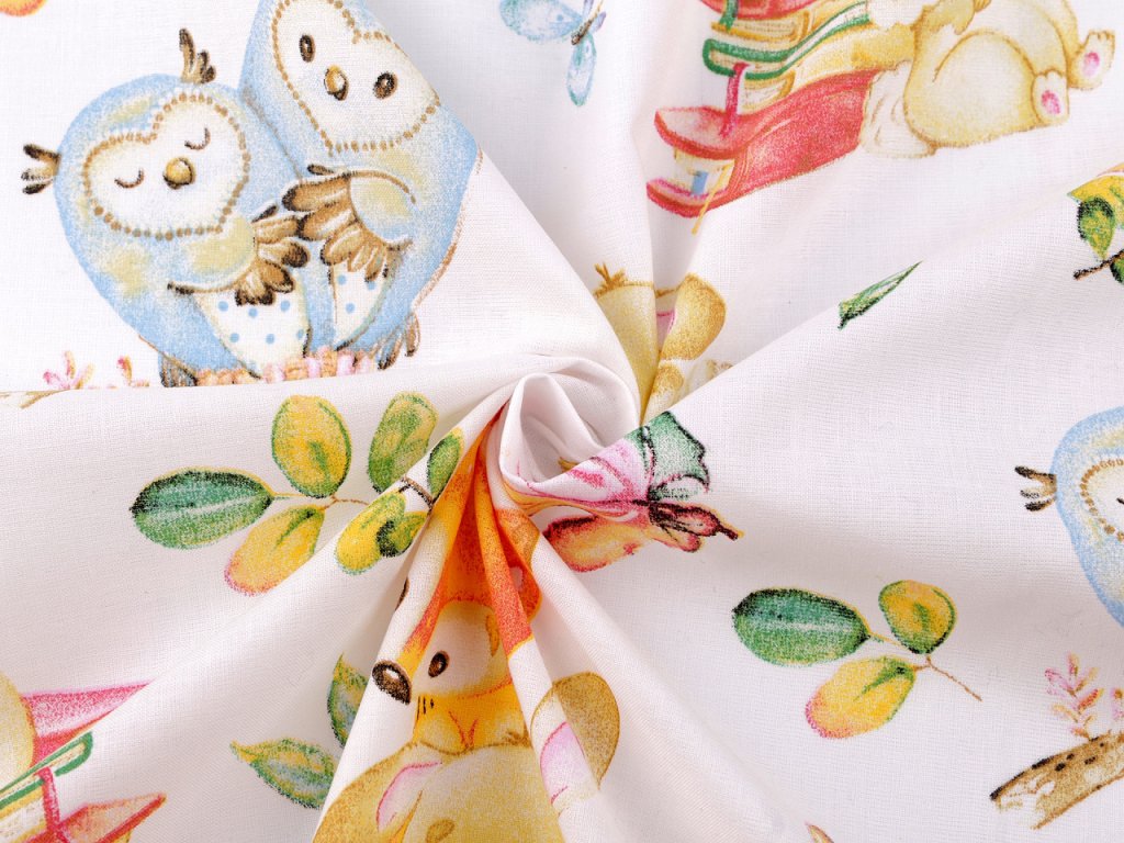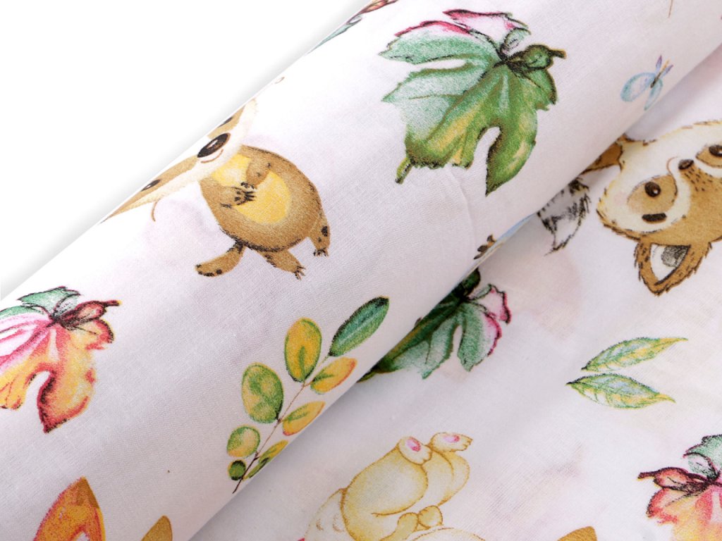 Bavlněnou látku s potiskem zvířátek využijete na šití polštářů, povlečení, mantinelů do postýlek, kapsářů, tašek, pytlíků apod.