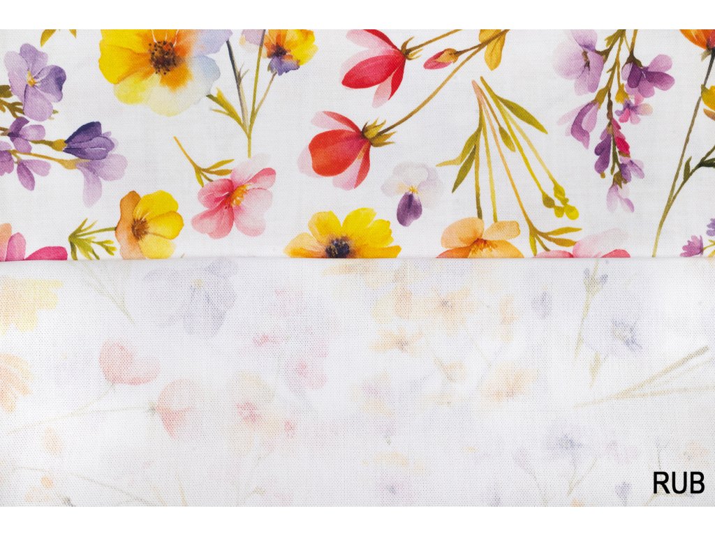 Bavlna režná barevné jarní kvítí na bílé