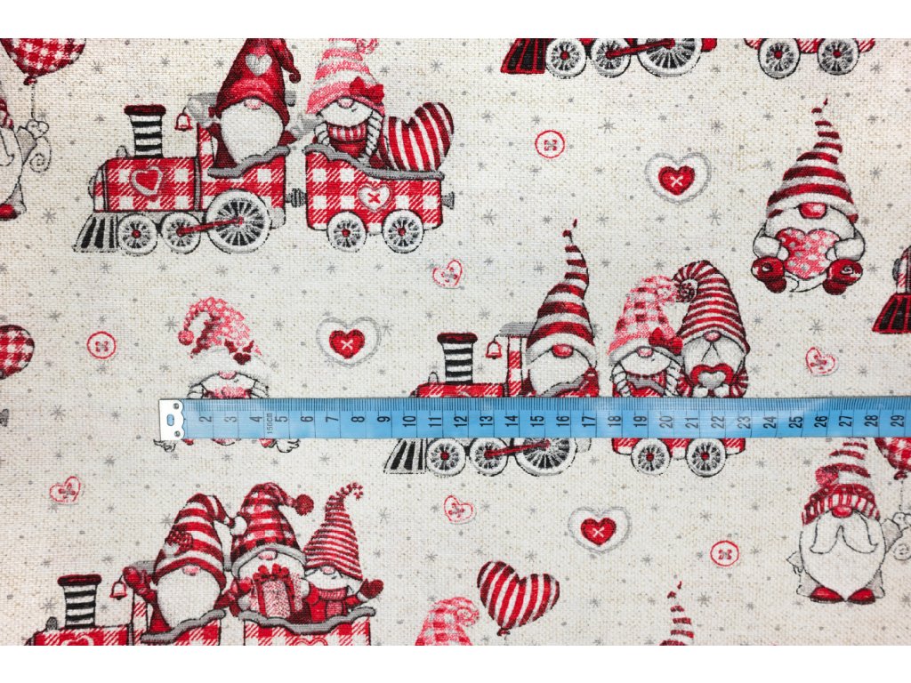 Bavlna režná vánoční skřítci ve vláčku na béžové