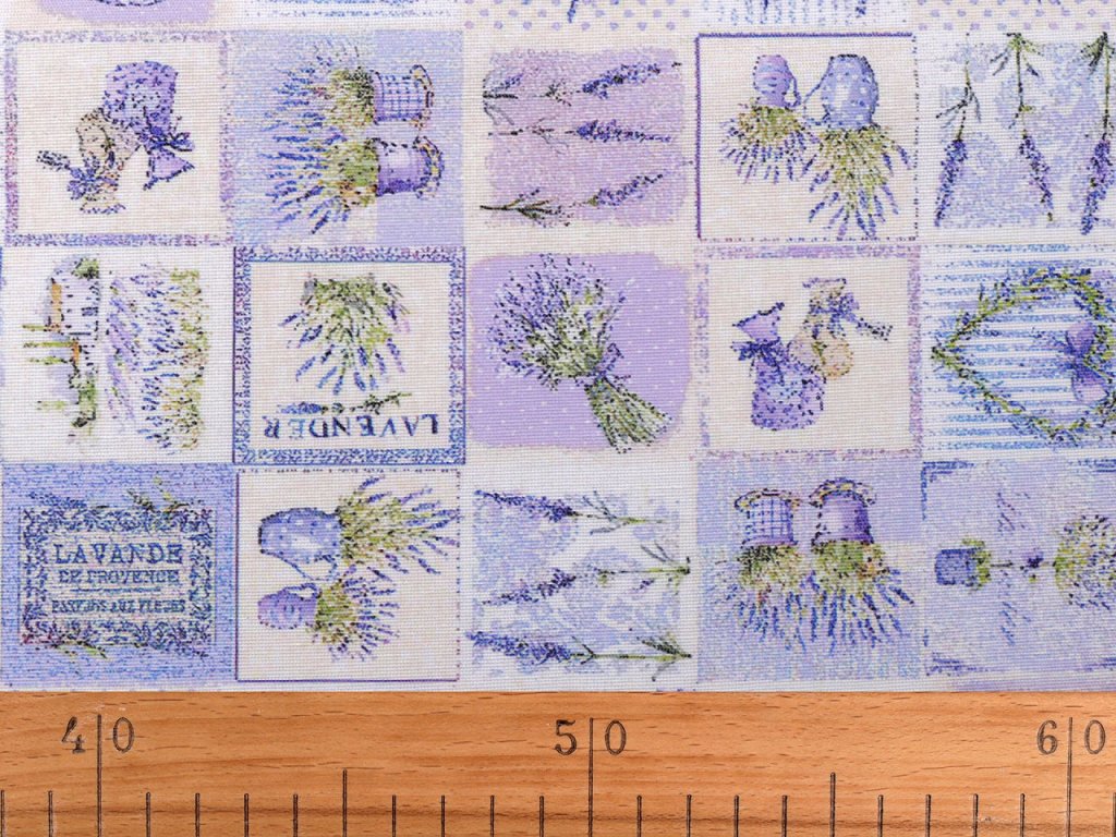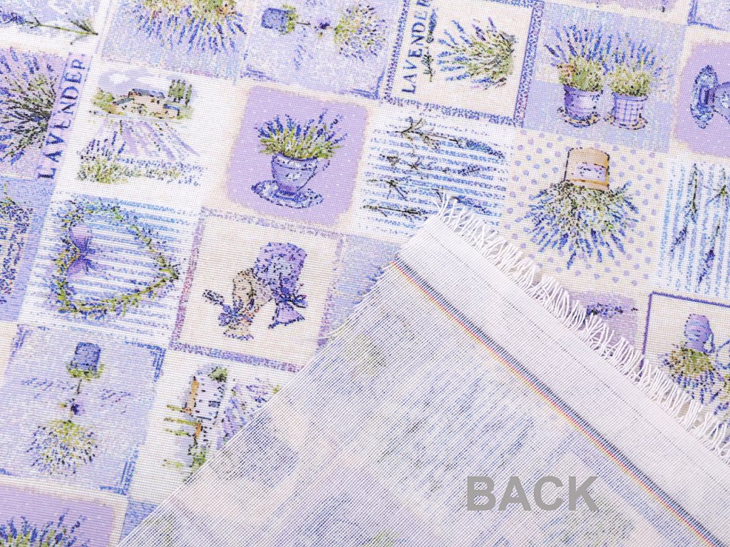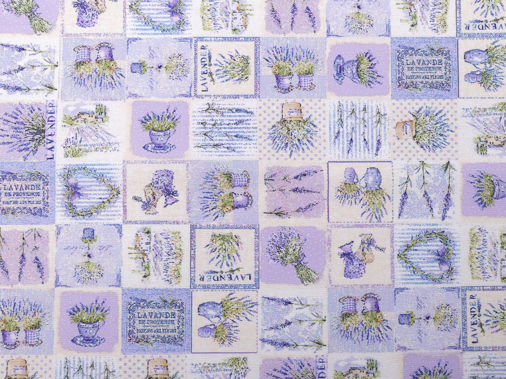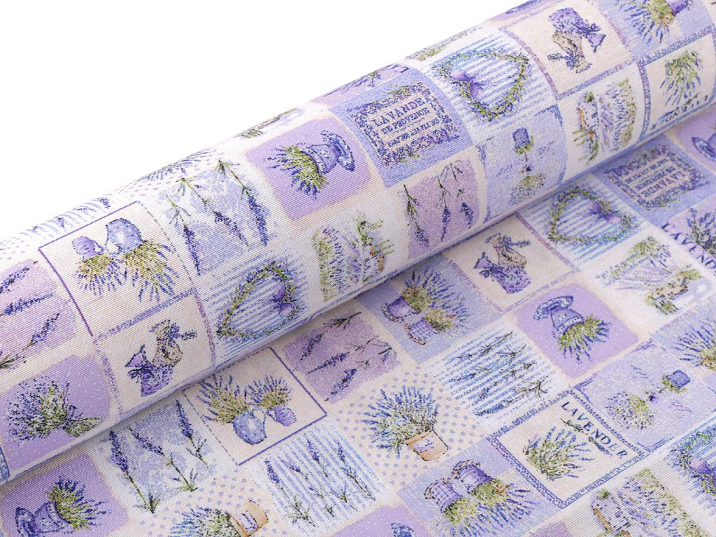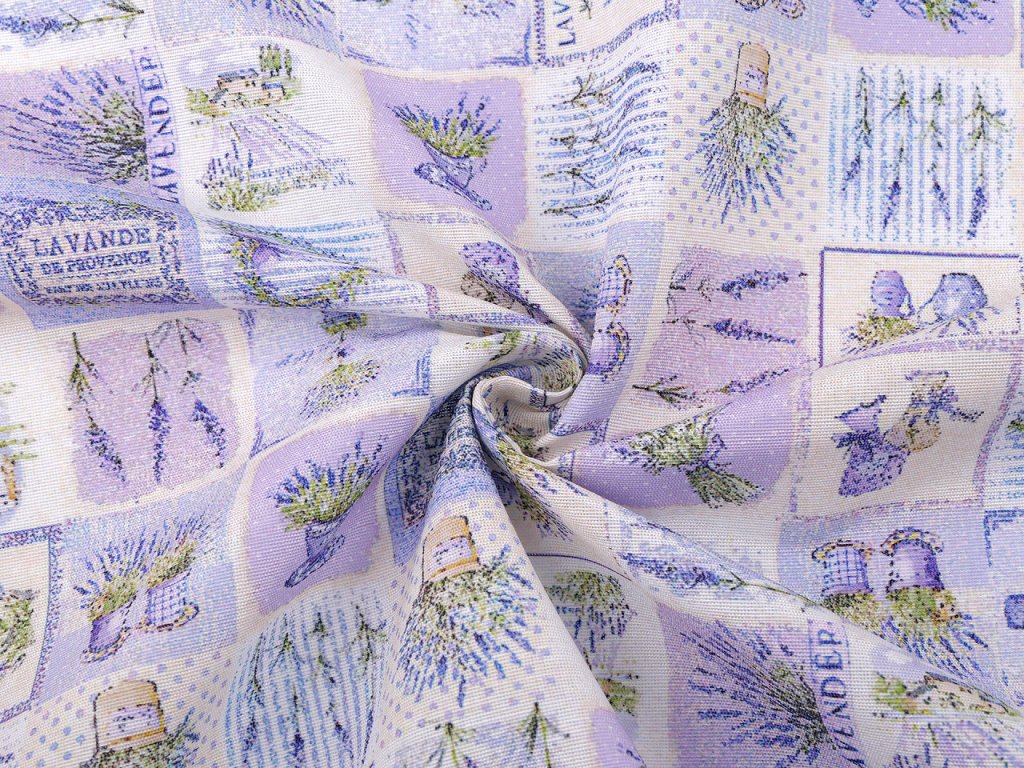 Odolnou a pevnou látku s levandulí využijete na šití ubrusů, prostírání, dekoračních povlaků na polštáře, tašek, závěsů a různých bytových dekorací.