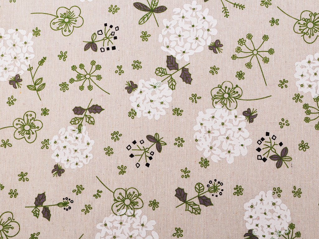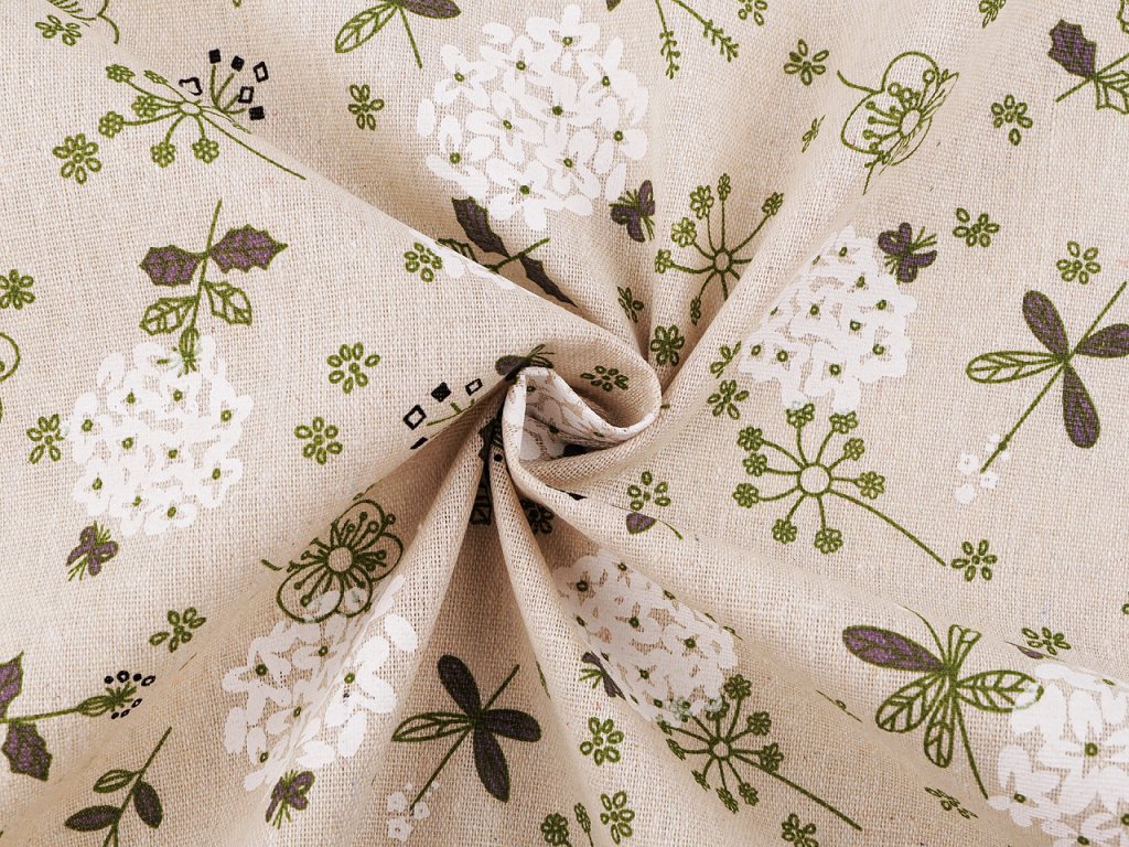 Hrubší květovaná bavlněná látka svou plátnovou vazbou imituje len. Využijete ji na šití ubrusů, běhounů, prostírání nebo dekoračních polštářů. Je oblíbená i na dětské teepee.