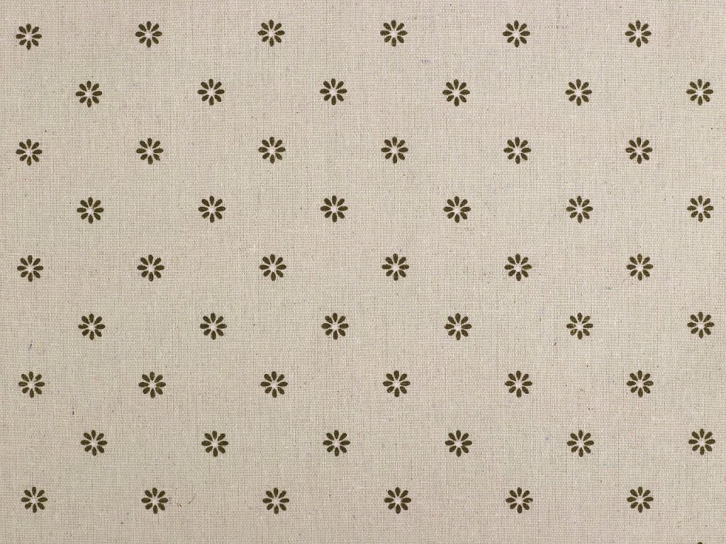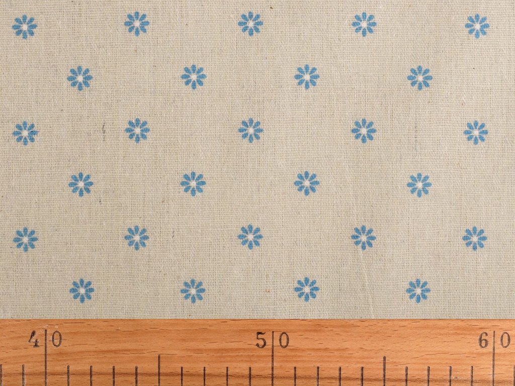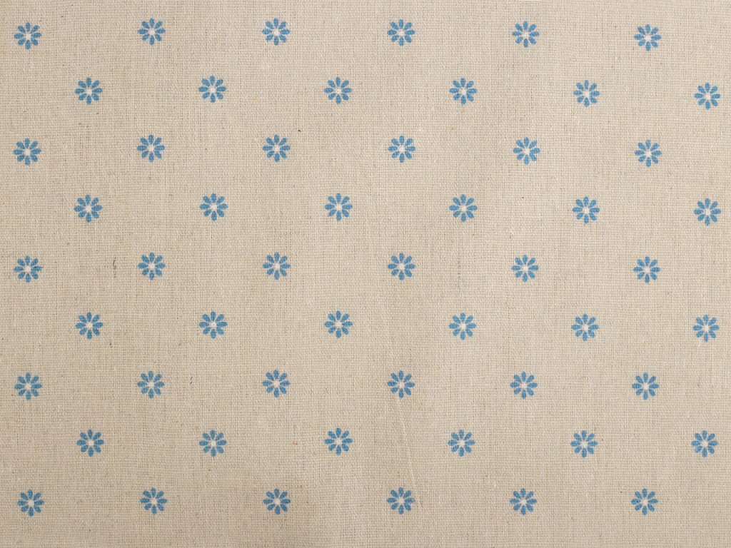 Bavlněnou látku zdobí potisk malých kvítků. Svou plátnovou vazbou připomíná len. Je hrubší, pevná, vhodná na šití ubrusů, běhounů, prostírání, dekoračních polštářů, dětských teepee apod.