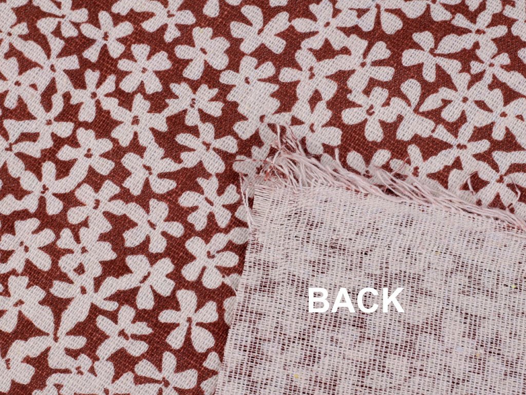 Bavlněná látka s potiskem květů je hrubší, pevná a hodí se na šití tašek, ubrusů, běhounů, prostírání, dekoračních polštářů, dětských teepee apod. Svou plátnovou vazbou připomíná len.