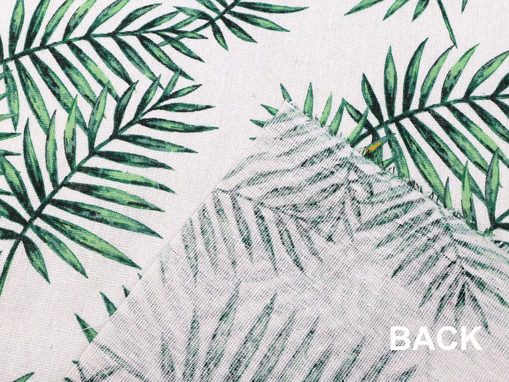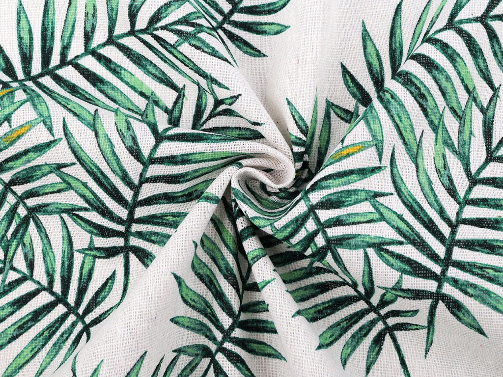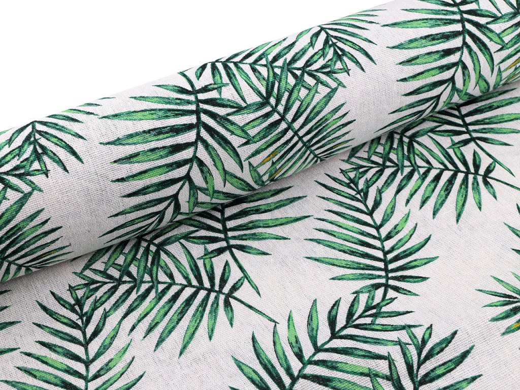 Bavlněnou látku s motivem listů využijete na šití ubrusů, běhounů, prostírání, dekoračních polštářů, dětských teepee apod. Je hrubší a pevná, svou plátnovou vazbou připomíná len.
