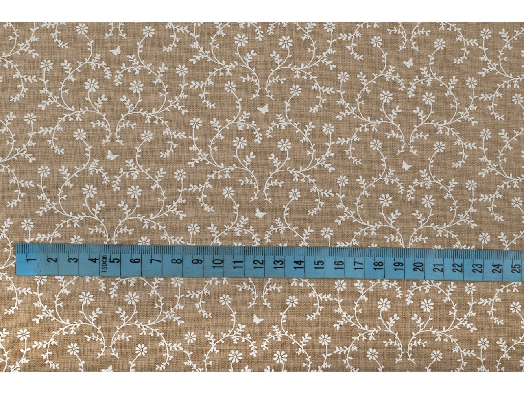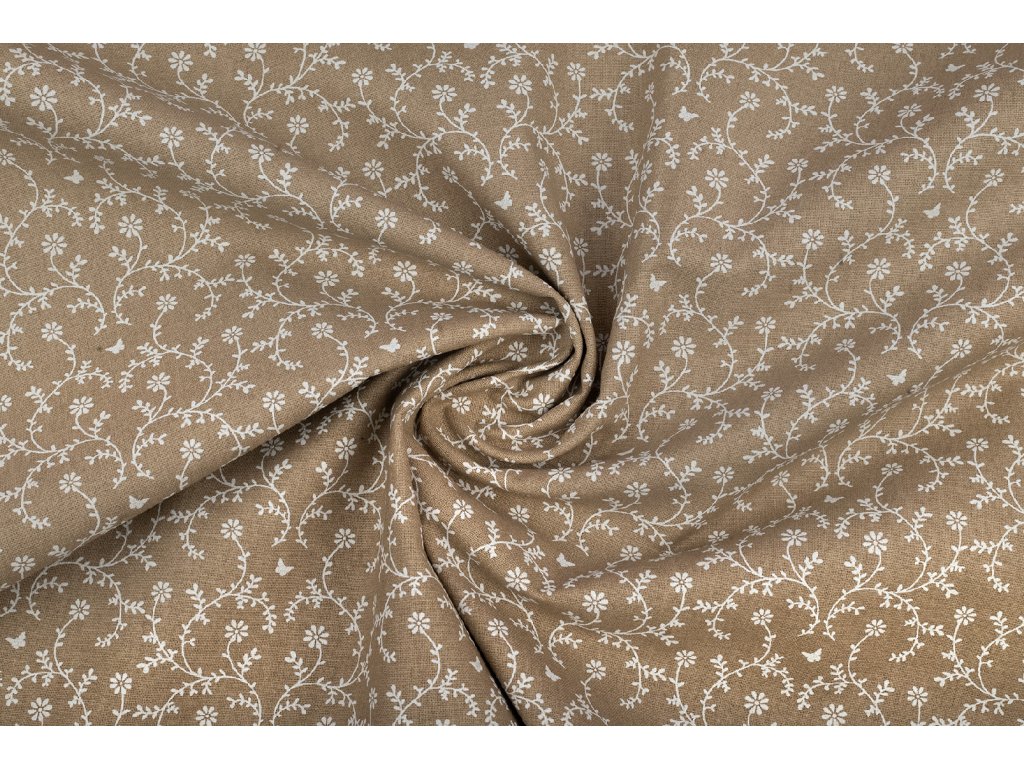 Bavlněné plátno drobné plazivé kvítí na béžové