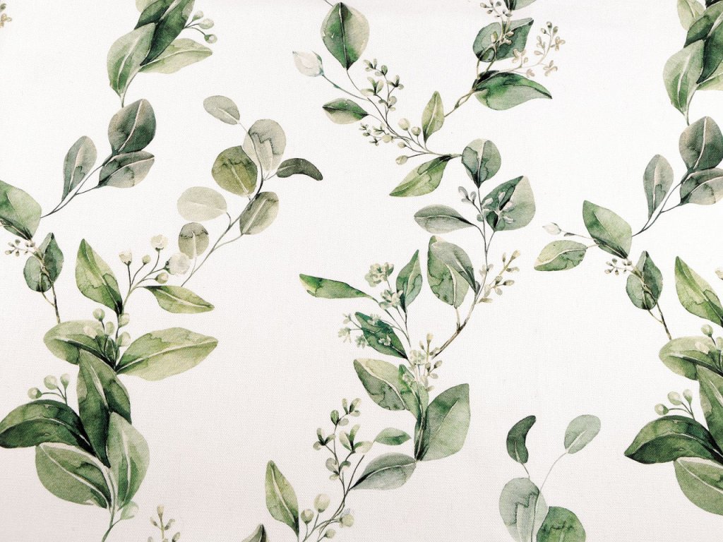 Látka Half panama má strukturu podobnou klasické vyšívací panamě. Je pevná, ale zároveň měkká a příjemná na dotek. Zdobí ji potisk rostlin.