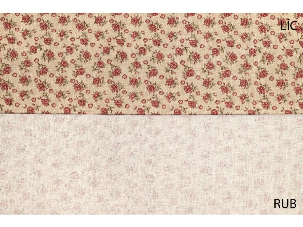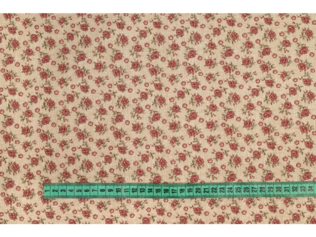 Bavlněné plátno růže na béžovém melíru