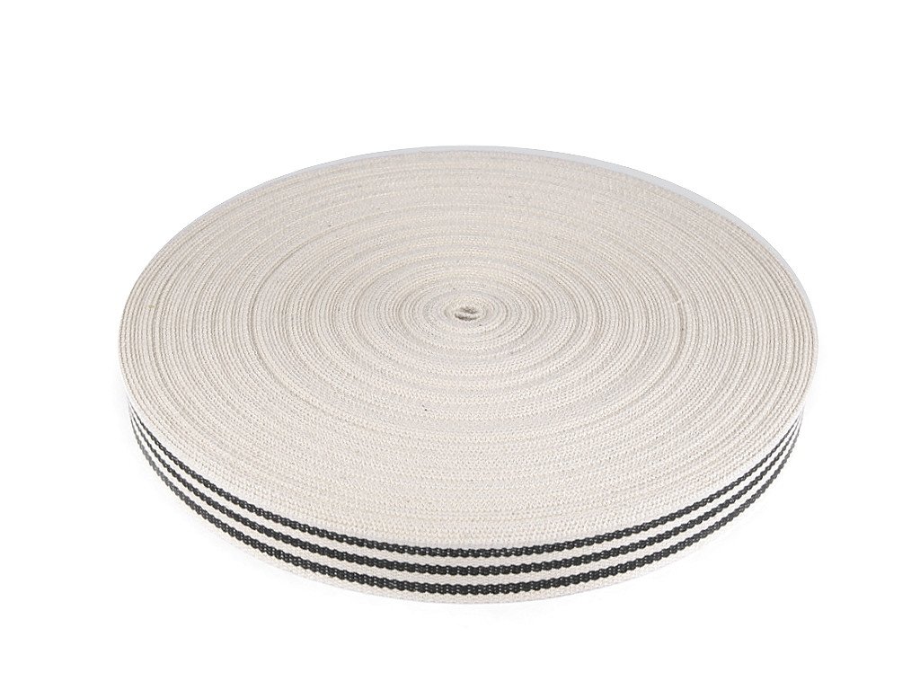 Pevný popruh je vhodný jako ucho na batohy či tašky. Můžete ho použít také na výplety nábytku, lehátek, saní, lemování textilních výrobků atd. Hodí se i na výrobu opasků.