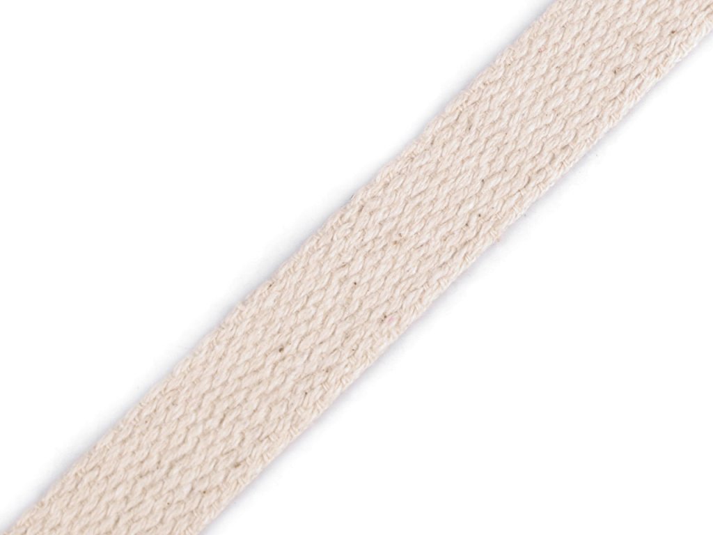 Pevný bavlněný popruh využijete jako ucho na menší batůžky, tašky či ledvinky. Je vhodný také na výplety nábytku, lehátek, saní, lemování textilních výrobků atd.