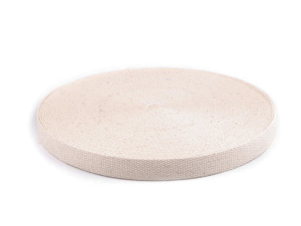 Bavlněný popruh využijete jako ucho na batohy, tašky i na výrobu ledvinek. Je vhodný také na výplety nábytku, lehátek, saní, lemování textilních výrobků atd.