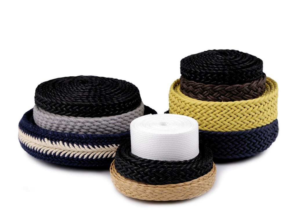 Balení popruhů obsahuje popruhy různých druhů, složení, šíře a délky. Najdete zde popruhy bavlněné, polypropylénové, splétané, slaměné apod.