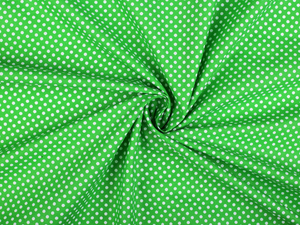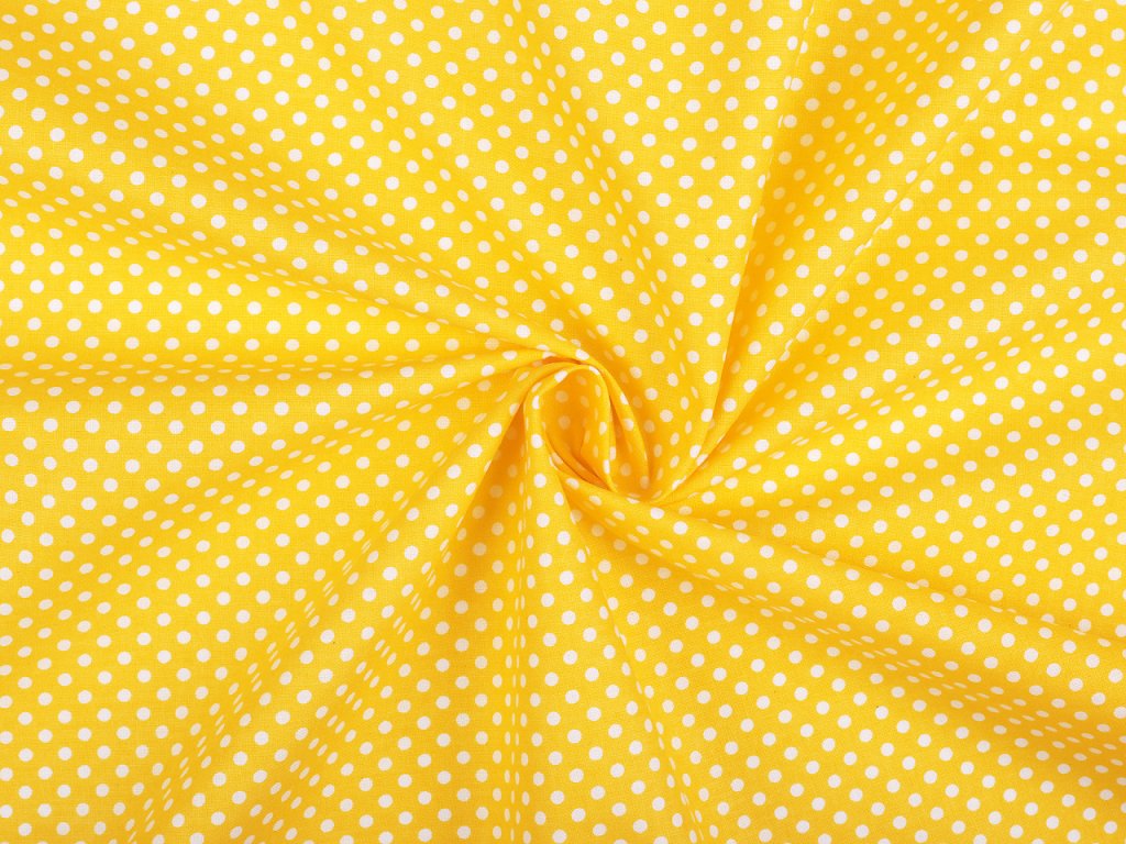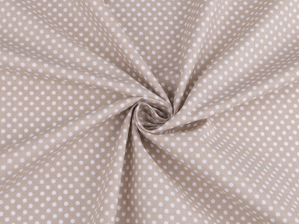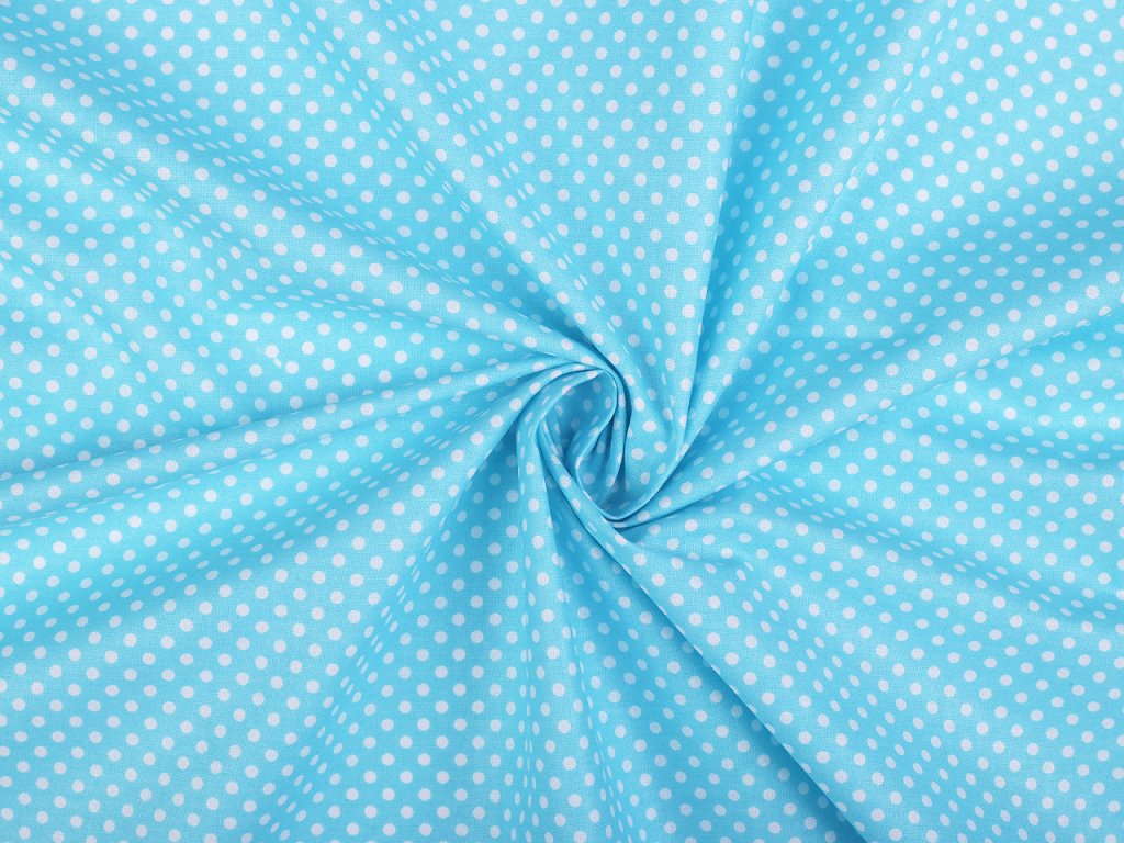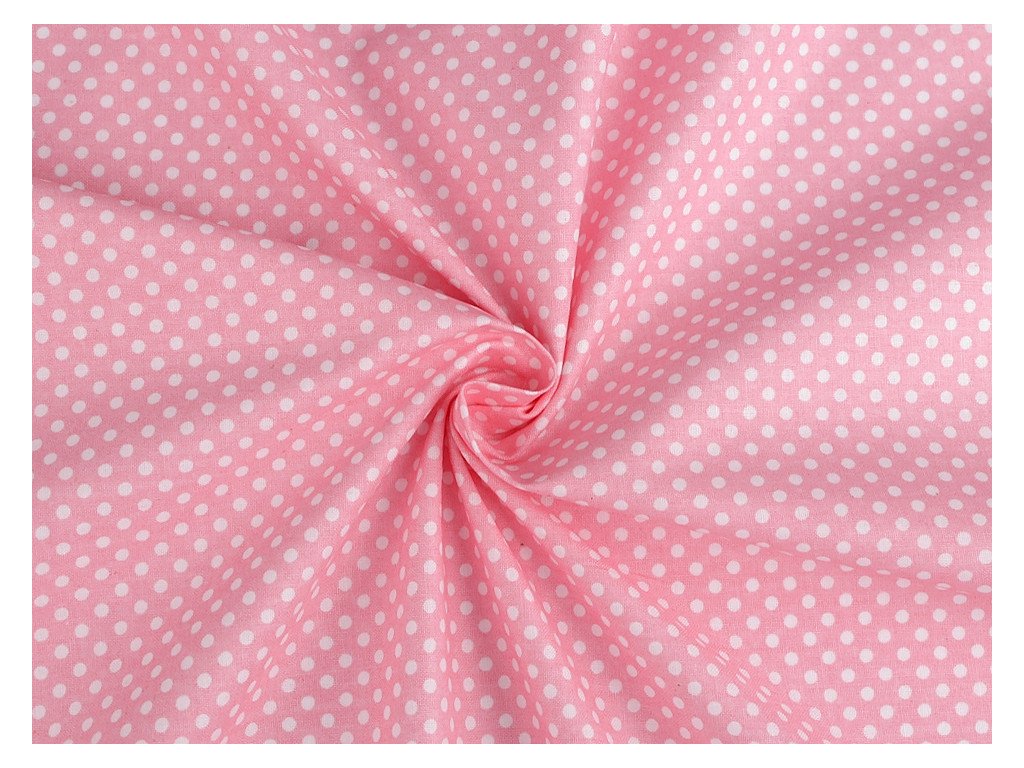 Bavlněnou látku zdobí potisk oblíbených puntíků. Využijete ji na šití závěsů, polštářů, ubrusů, prostírání, tašek, pytlíčků, mantinelů do postýlek i hnízd pro děti.
