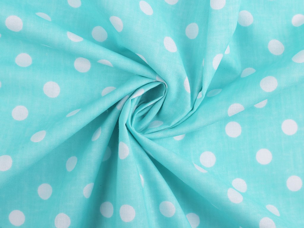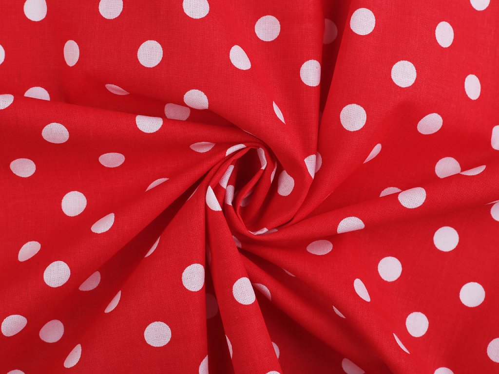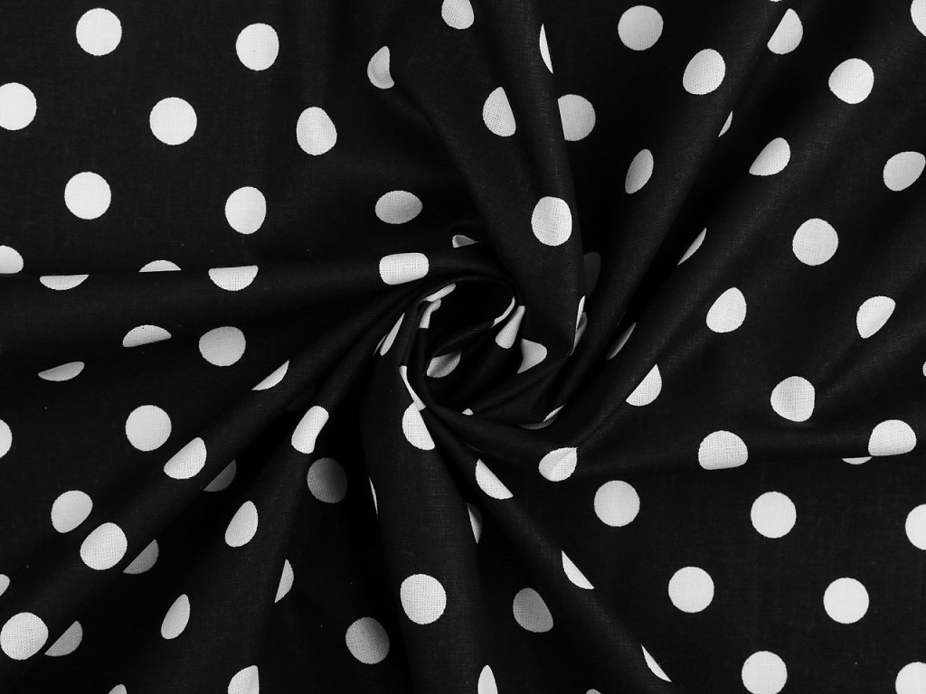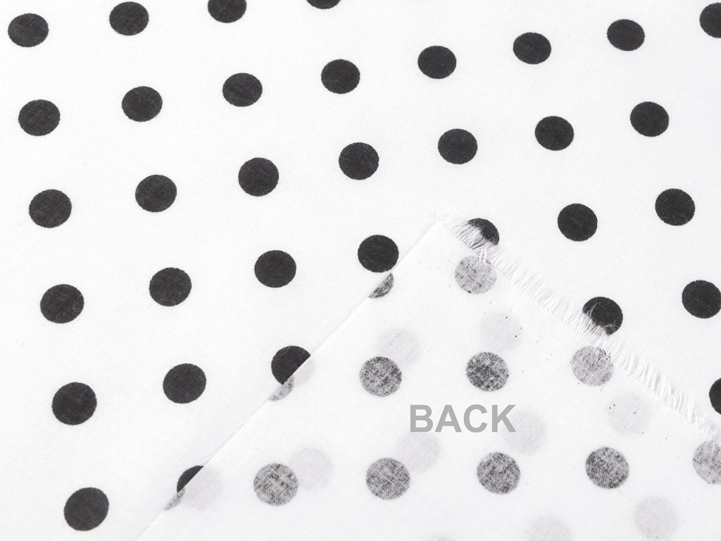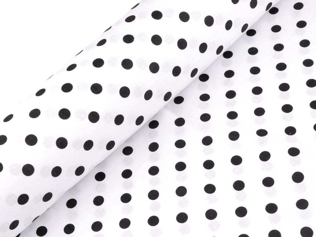 Puntíkovanou látku využijete na šití polštářů, povlečení, ubrusů, ale třeba i letních halenek a šatů. Je měkká a příjemná na dotek. Bílý podklad lehce prosvítá.