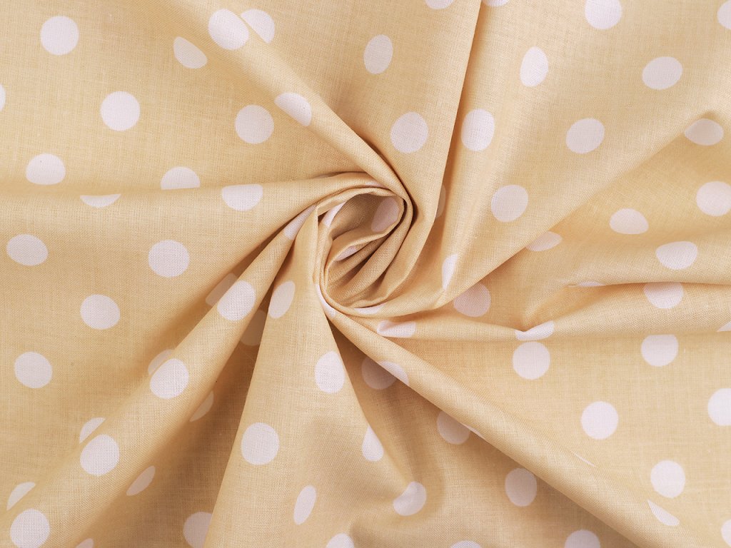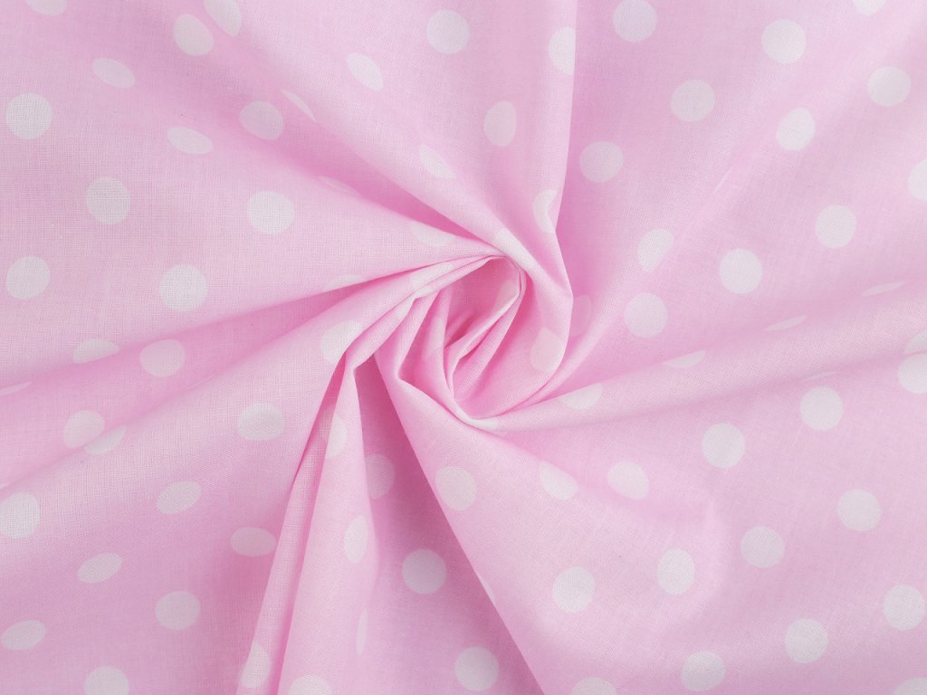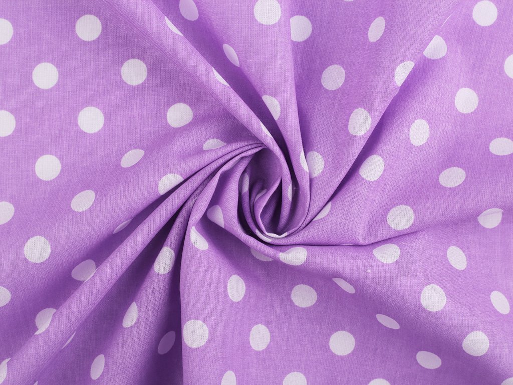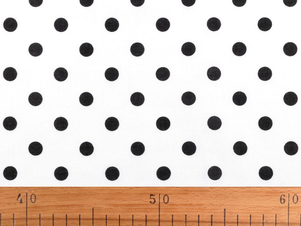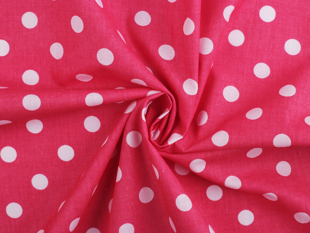 Puntíkovanou látku využijete na šití polštářů, povlečení, ubrusů, ale třeba i letních halenek a šatů. Je měkká a příjemná na dotek. Bílý podklad lehce prosvítá.