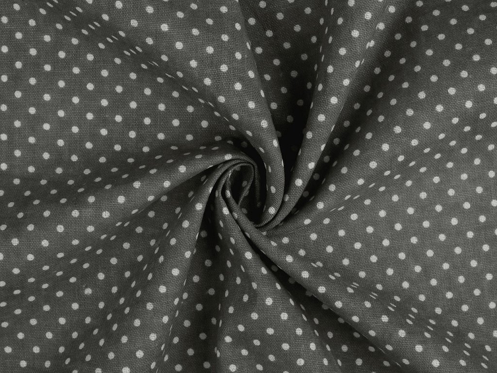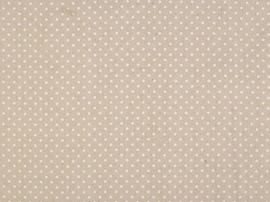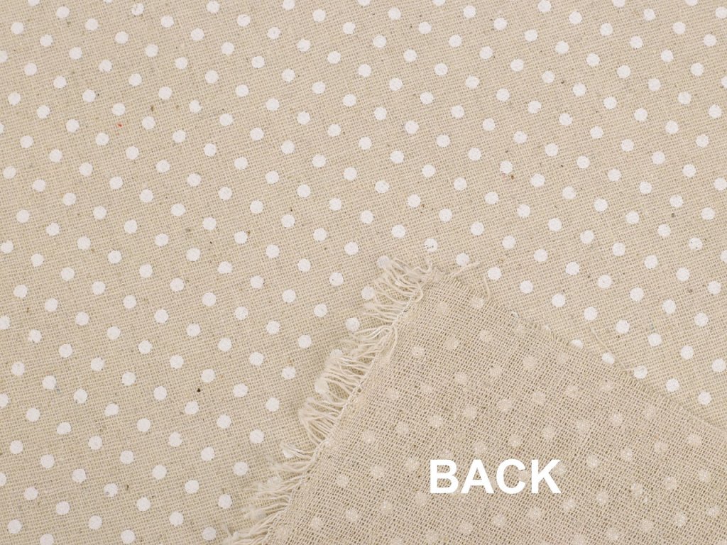 Bavlněnou látku zdobí potisk puntíků. Svou plátnovou vazbou připomíná len. Je hrubší, pevná, vhodná na šití ubrusů, běhounů, prostírání, dekoračních polštářů, dětských teepee apod.