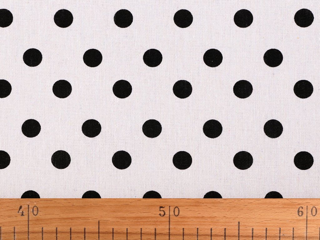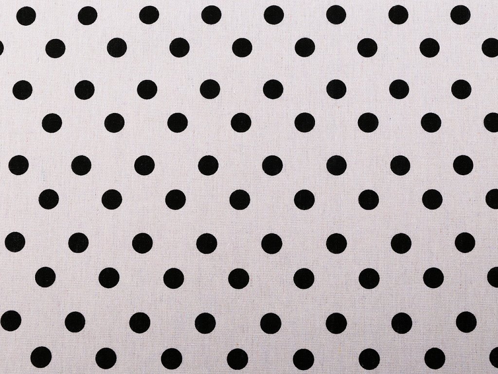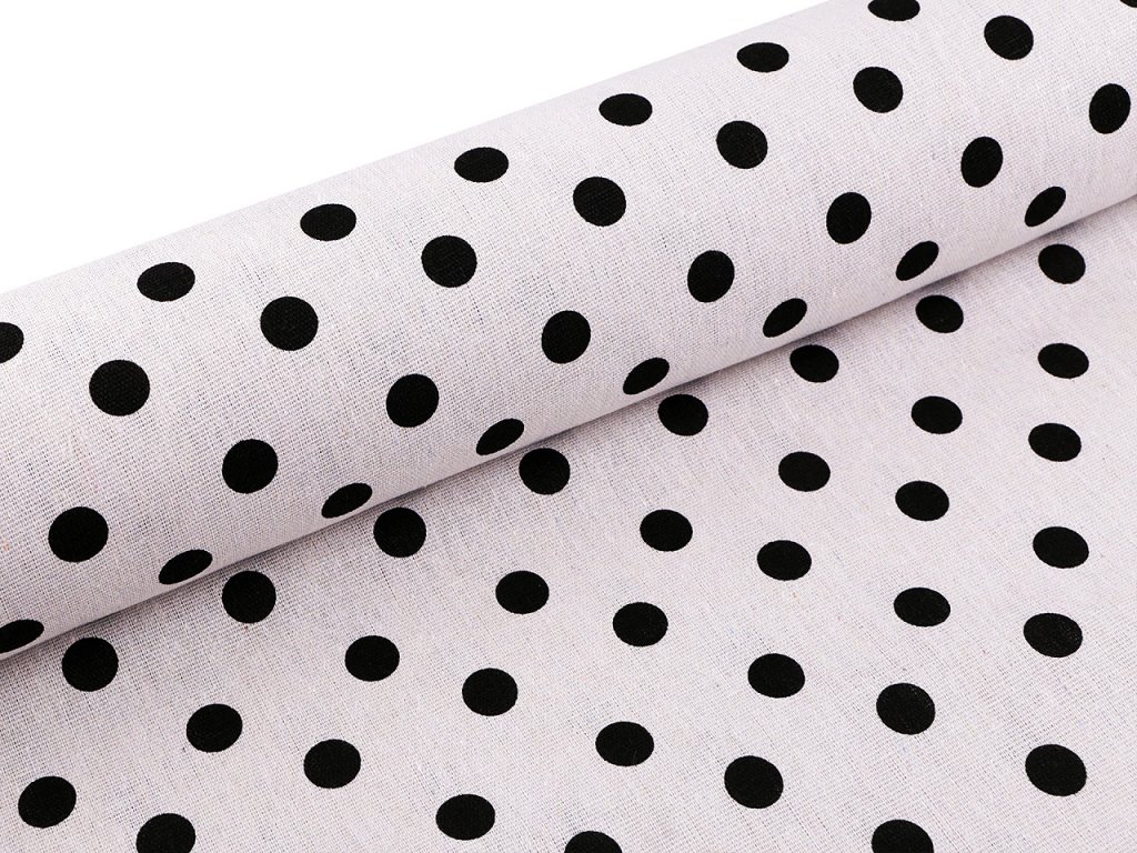 Pevnou bavlněnou látku s puntíky vyžijete na šití ubrusů, prostírání, běhounů, tašek, dekoračních polštářů, dětských teepee apod. Je hrubší a pevná, svou plátnovou vazbou připomíná len.