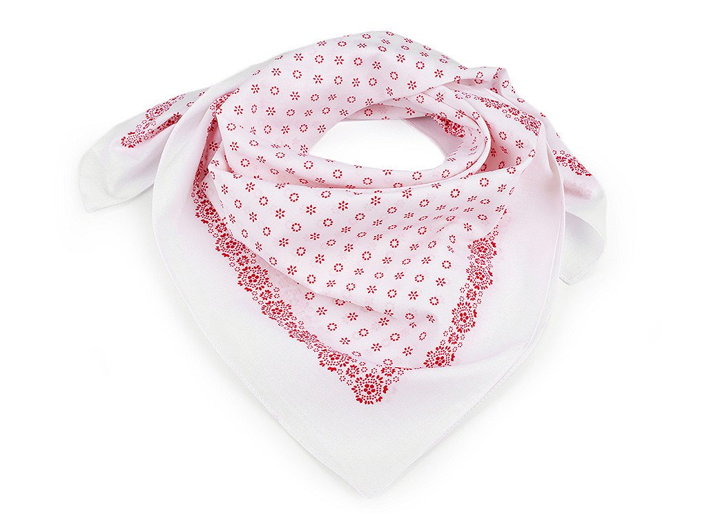 Šátek s potiskem drobných květů doplní jakýkoli outfit. Je vhodný ke každodennímu nošení. Můžete ho uvázat do slušivého uzlu, který podtrhne dokonalost vašeho oděvu. Oživíte s ním sáčko, halenku, šaty, klobouk i tričko, ale je možné ho nosit na zápěstí jako netradiční doplněk.