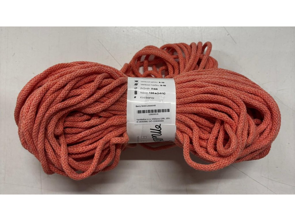 Bavlněná šňůra YarnMellow Berry 3mm lososová DOPRODEJ