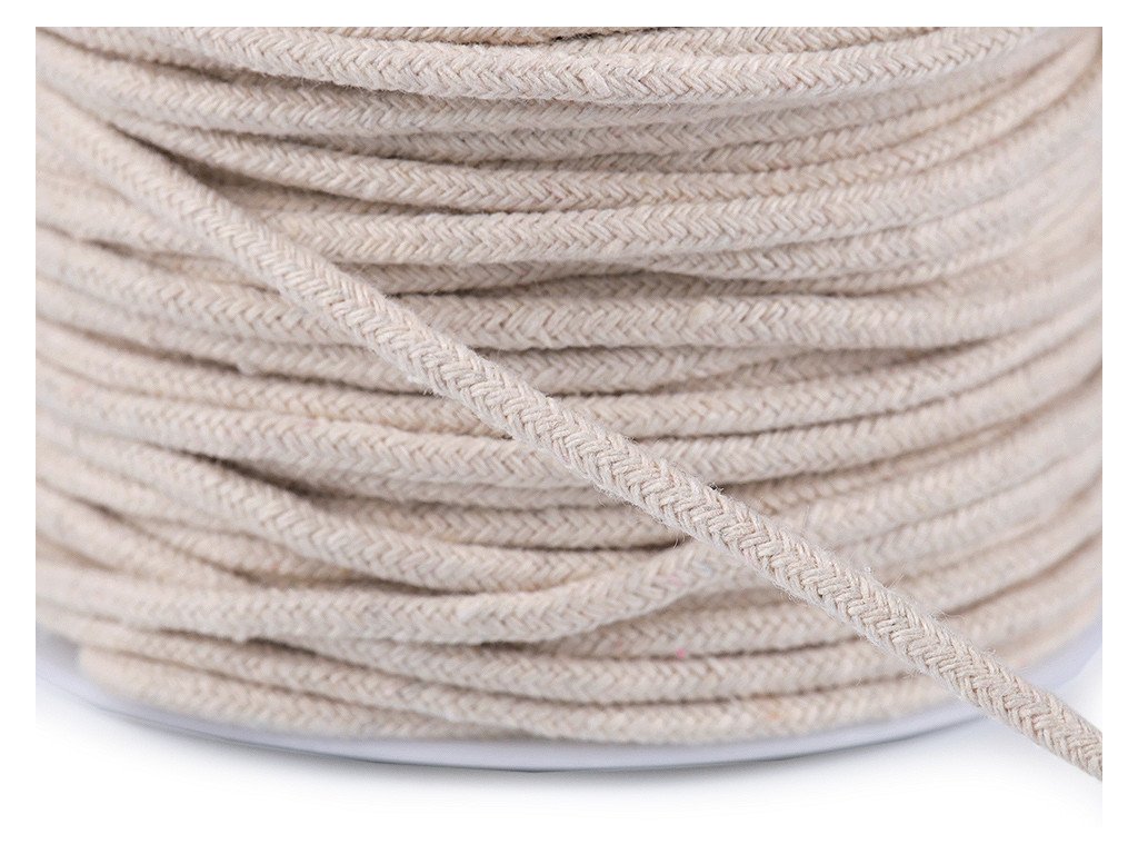 Kulatá splétaná šňůra je vhodná na výrobu drhaných (macramé) výrobků i na pletení a háčkování tašek, košíků apod.