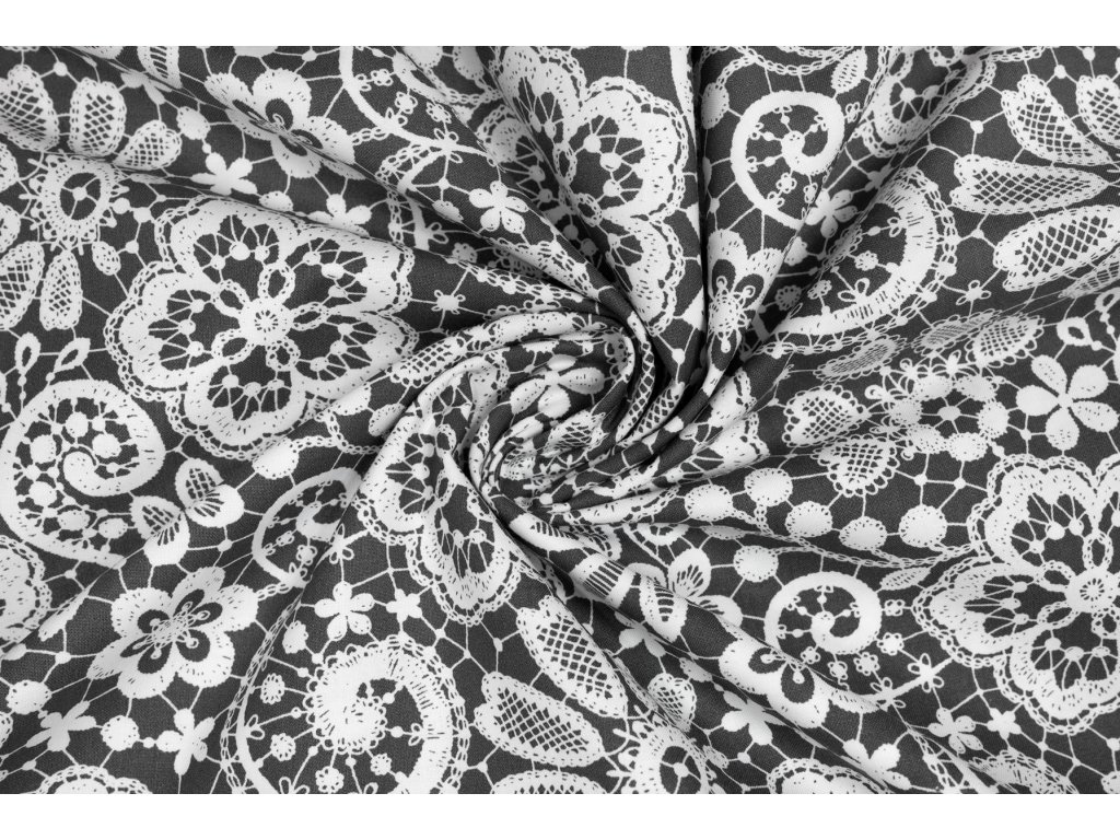 Bavlněné plátno krajky na šedé