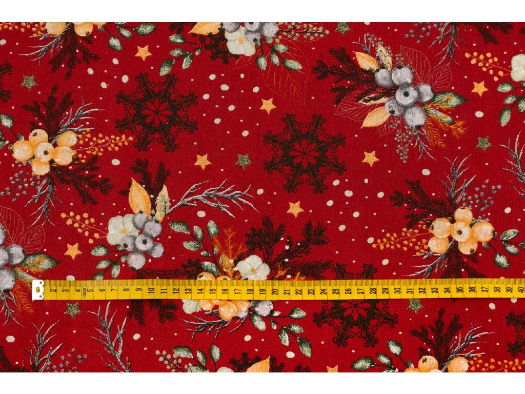 Bavlněné plátno vánoční dekorace s vločkami na červené