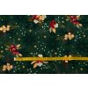 Bavlněné plátno vánoční dekorace s vločkami na zelené
