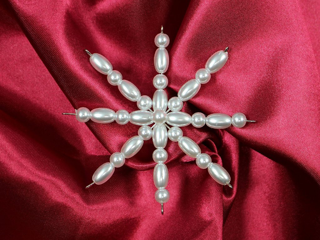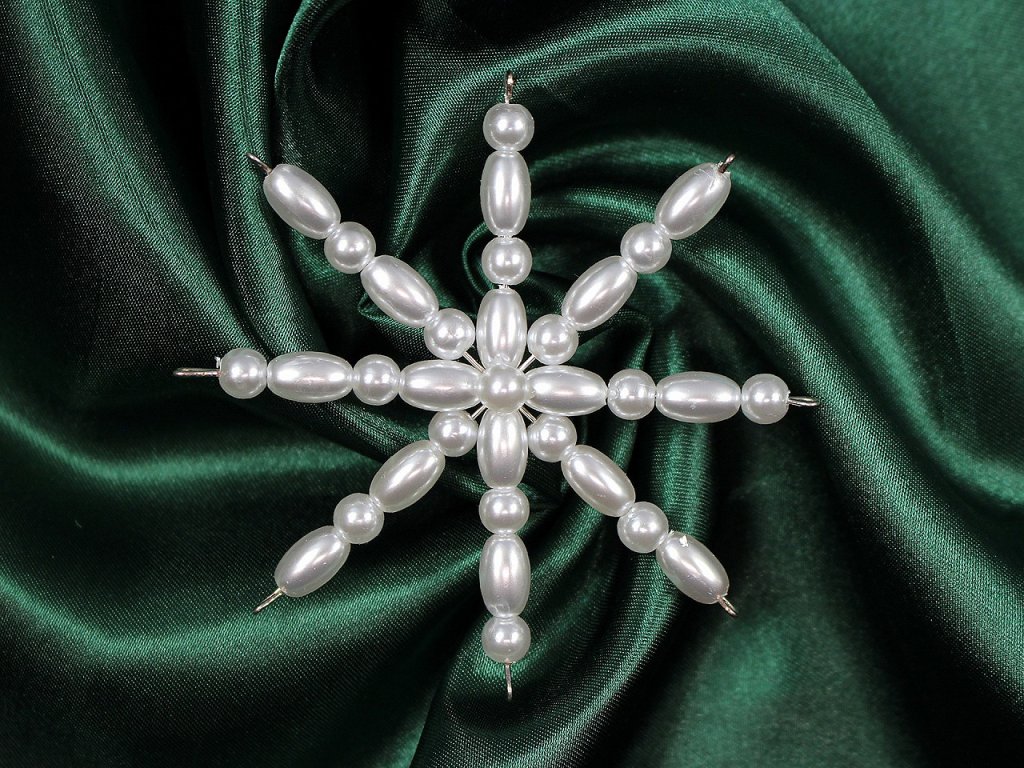 Základ se skládá ze 4 drátů, jež tvoří 8 paprsků. Díky střední tvrdosti drátu se s ním výborně pracuje. Stačí navléknout korálky a na konci drátku zatočit očko pomocí kulatých bižuterních kleští. Hotovou hvězdu můžete zavěsit pomocí háčku nebo šňůrky na stromeček, do okna apod.