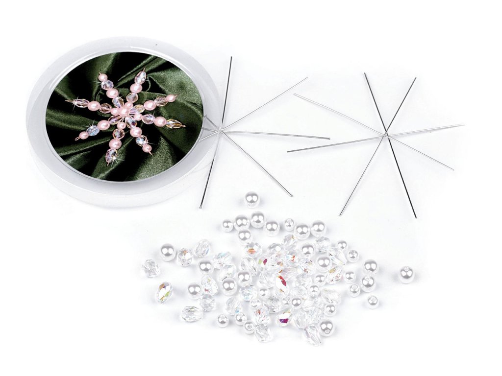 Sada na výrobu vánočních hvězd obsahuje 2 drátěné základy a voskové a české broušené korálky.