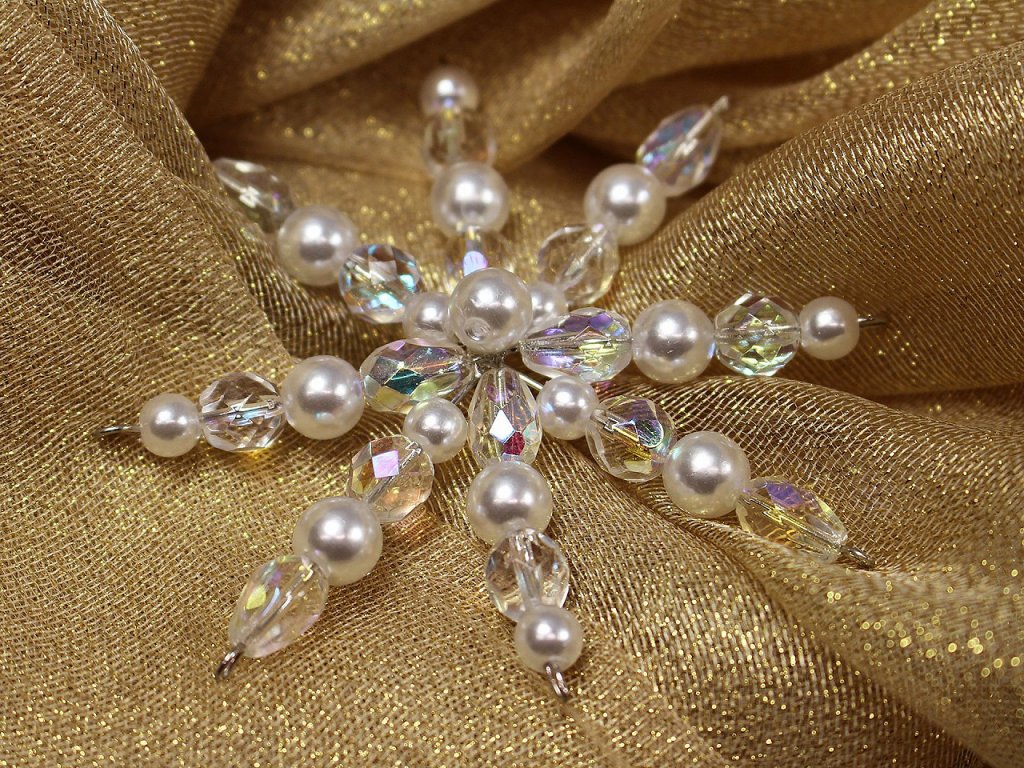 Základ se skládá ze 4 drátů, jež tvoří 8 paprsků. Díky střední tvrdosti drátu se s ním výborně pracuje. Stačí navléknout korálky a na konci drátku zatočit očko pomocí kulatých bižuterních kleští. Hotovou hvězdu můžete zavěsit pomocí háčku nebo šňůrky na stromeček, do okna apod.