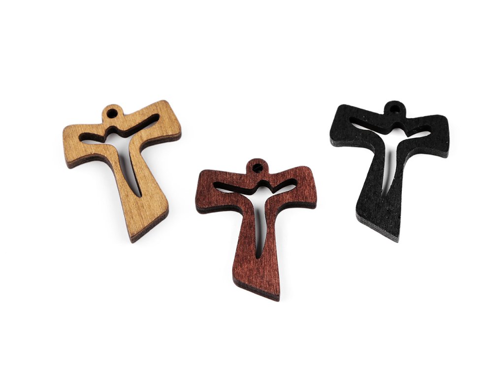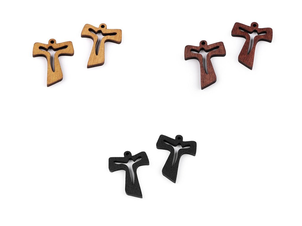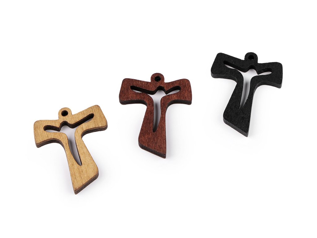Dřevěný přívěsek kříže zaujme pozornost svým netradičním vzhledem. Je velice kvalitní, mořený, precizně vyřezaný laserem. Nahoře má otvor k navlečení šňůrky, šlupny nebo rozevíracího kroužku. Můžeme je využít k výrobě náramků, růženců apod.