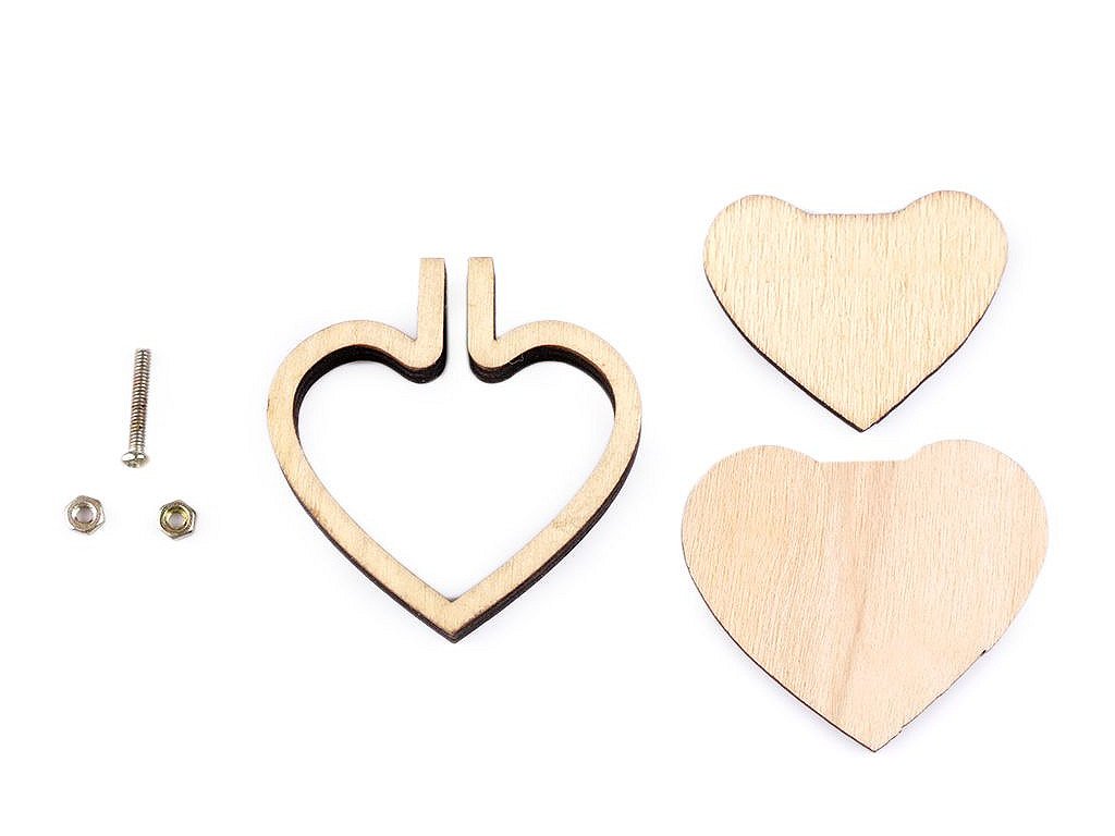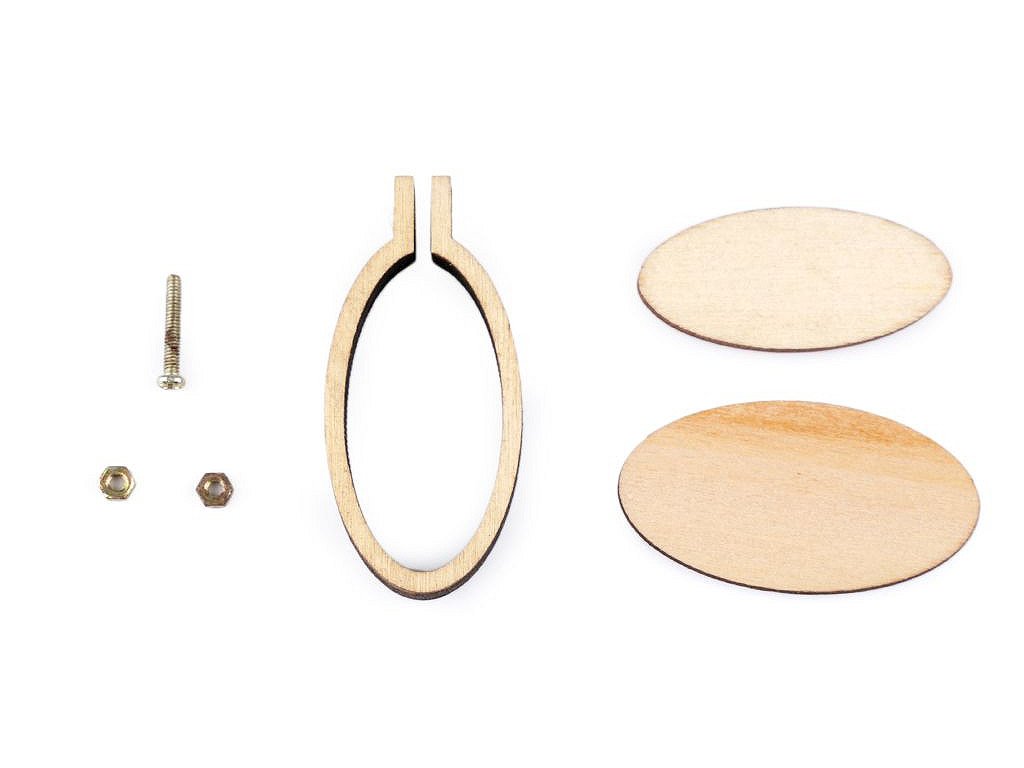 Malý dřevěný rámeček je vhodný na tvoření drobných vyšívaných obrázků. Hotové obrázky v rámečku můžete nosit jako přívěsek na krku nebo s nimi můžete ozdobit dárky apod. Vyšitý obrázek nalepte na menší destičku, větší destičku nalepte ze zadní strany rámečku a vložte do rámečku menší destičku s obrázkem. Rámeček v horní části utáhněte přiloženým šroubkem a maticemi.