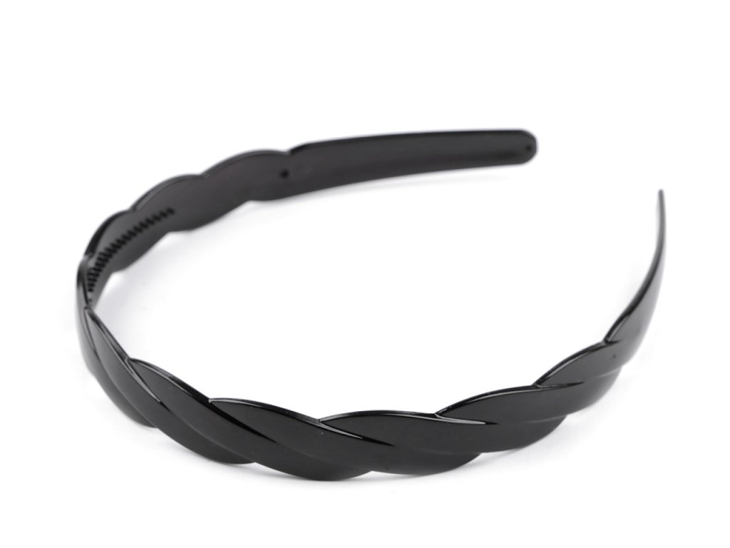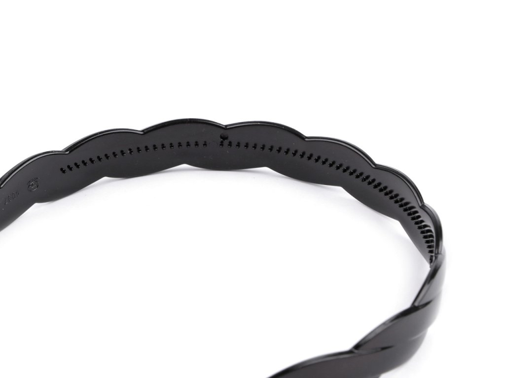 Plastová čelenka s krouceným designem má lesklý a hladký povrch. Je vyrobená z kvalitního plastu, velmi dobře ve vlasech drží díky malým zoubkům na vnitřní straně.
