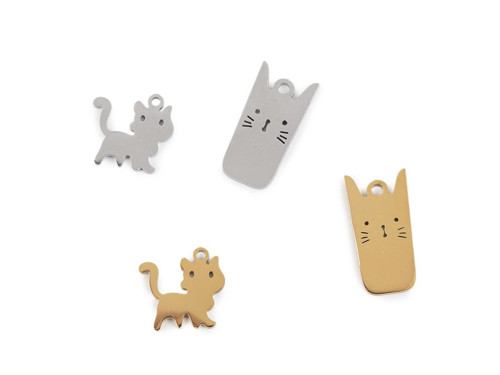 Malý přívěsek kočky z nerezové oceli využijete k výrobě náramků, na náušnice i na náhrdelník. Pozornost upoutá i jeho vysoký lesk. Nahoře má průvlek na zavěšení. Můžete využít spojovací kroužek, šlupnu i šňůrku na zavěšení.
