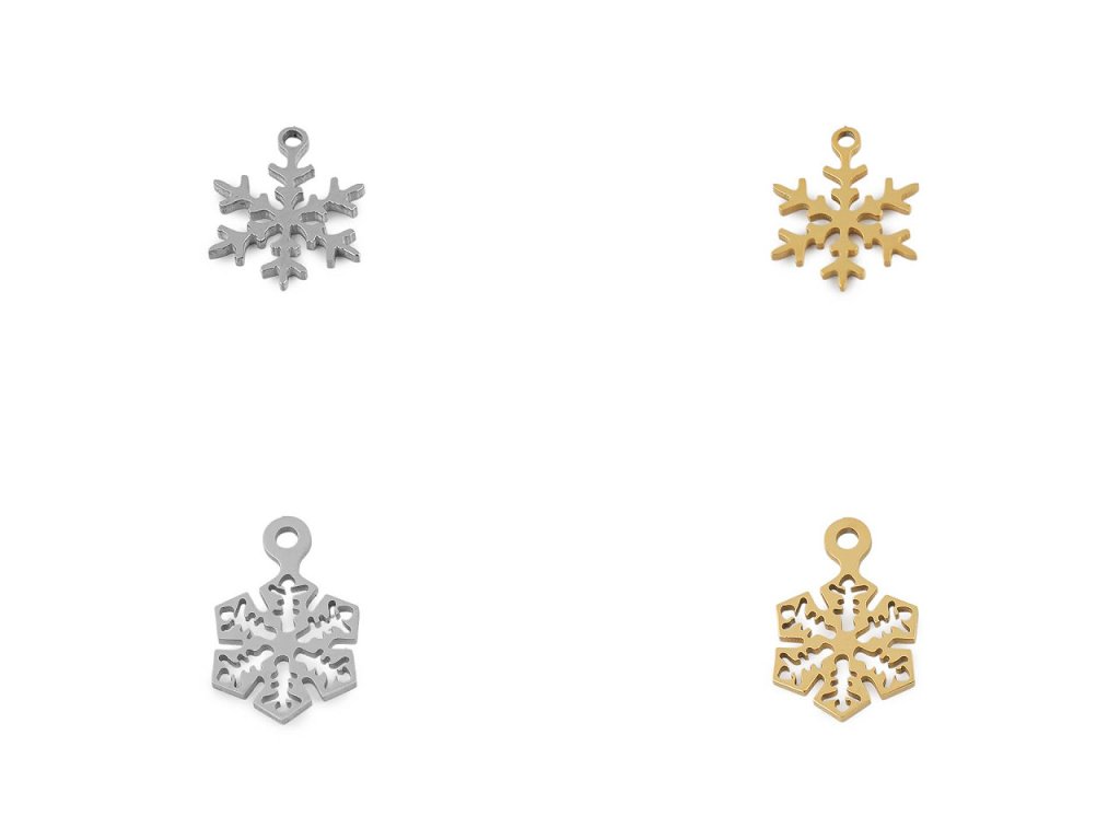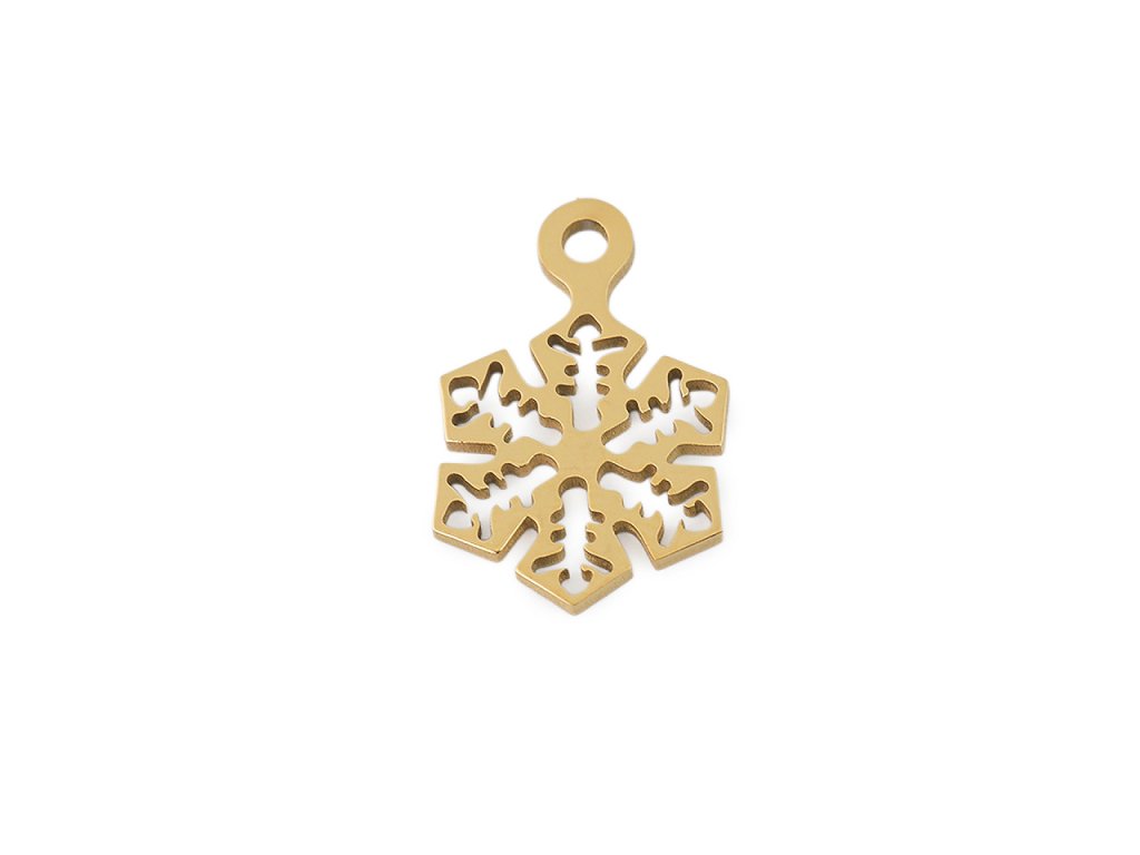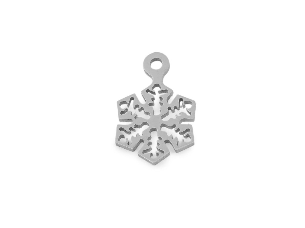 Malý přívěsek vločky z nerezové oceli se hodí k výrobě náramků, na náušnice i na náhrdelník. Pozornost upoutá i jeho vysoký lesk. Nahoře má průvlek na zavěšení. Můžete využít spojovací kroužek, šlupnu i šňůrku na zavěšení.
